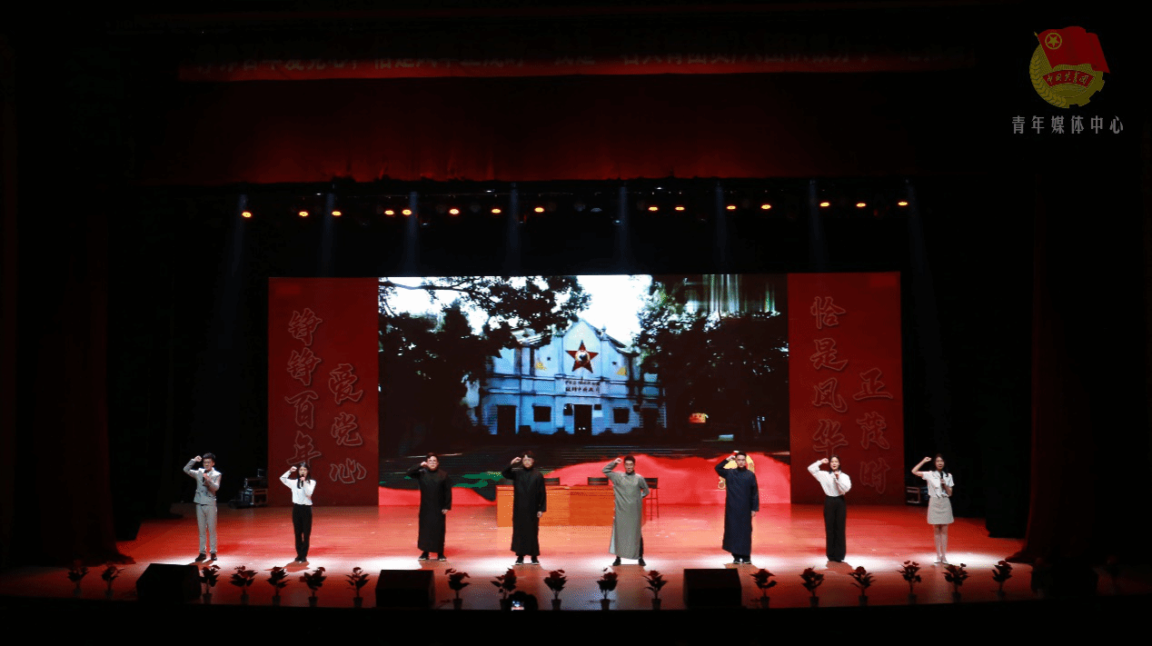 全校共青团员通过集体学习马克思、恩格斯《共产党宣言》,恩格斯《社会主义从空想到科学的发展》毛泽东《毛泽东选集》、邓小平《邓小平文选》、江泽民《江泽民文选》、习近平《习近平谈治国理政》《论中国共产党历史》《在湖北省考察新冠肺炎疫情防控工作时的讲话》等50余本参考文献,领悟革命的真理和党的初心使命,历时2个月进行创作,以时间为轴,通过雄关漫道、激情岁月和长风破浪这三个篇章,一共十二个节目,演绎共青团员在我国建党百年里所承担的责任与使命,向党献上了我们铮铮爱党之心。