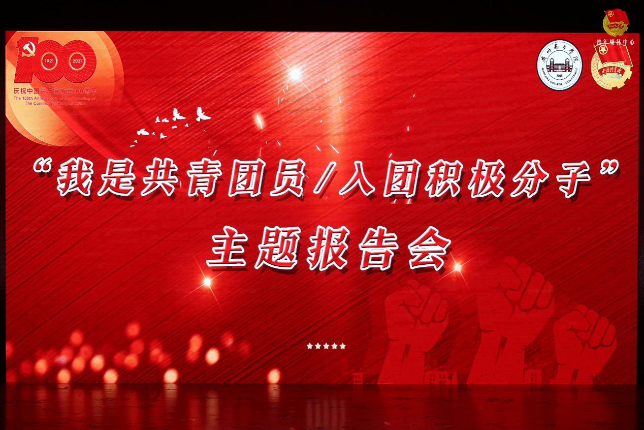 4月21日下午,9428cn太阳集团古天乐在学校大礼堂举行“铮铮百年爱党心,恰是风华正茂时——我是共青团员/入团积极分子”主题报告会。