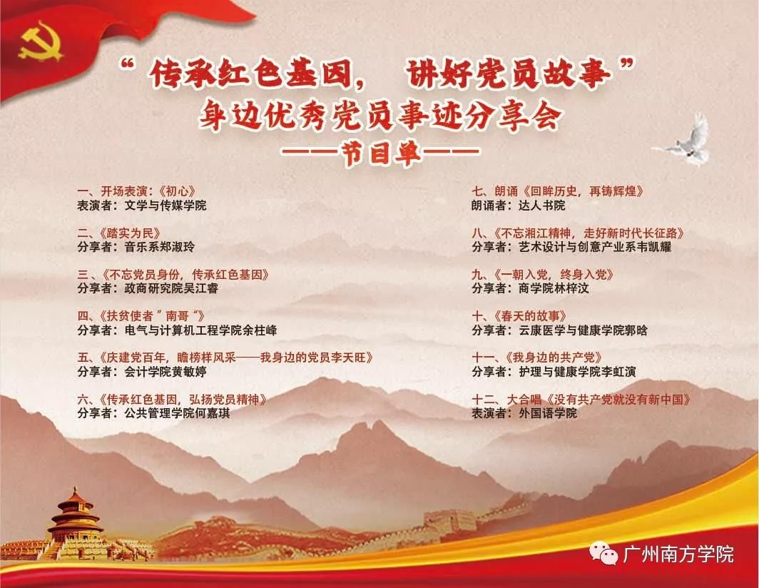 回顾百年风雨兼程,重温百年初心不忘。3月25日,我校在党委领导下组织的“庆祝建党百年•铭记初心使命”庆祝中国共产党成立100周年系列活动,以第七届“传家风.树学风.扬国风”主题教育活动《传承红色基因,讲好党员故事:身边优秀党员事迹分享会》在音乐厅拉开序幕,通过内容精彩、形式多样的党员事迹分享,开展党史、党员精神、党员优秀家风学习教育,进一步激发同学们对优秀党员先进事迹的崇敬和景仰,推动形成爱党爱国爱家、和睦友善、积极向上的大学新风尚,努力成为德才兼备、具有家国情怀的人才。