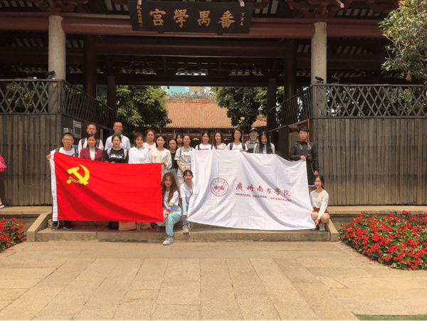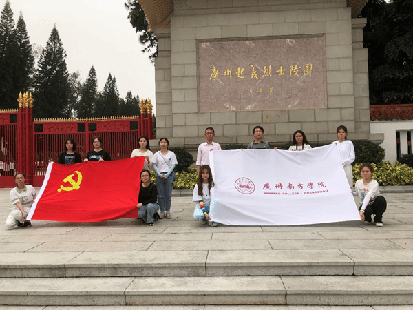 2021年清明小长假期间,“红色实训营”举行了开年首次游学实践活动。游学期间,实训营小伙伴们在综合素养学部张书理、杨乐老师带领下,先后参观了中山纪念堂、毛泽东同志主办广州农民运动讲习所旧址、广州起义纪念馆、广州起义烈士陵园。游学活动中,小伙伴们除以深深的敬意对革命先驱表达深切缅怀之外,还通过素材搜集、视频拍摄、现场解说等形式开展党史学习、宣讲等实践活动,以期让红色画面、红色声音、红色故事感染更多国人。有感于南方学院以研学促实践、以实践扬红魂的思政教育理念,广东省政策研究会的张轩老师和广州市委宣传部基层百姓宣讲团宣讲员陈丽萍老师也主动加入我校游学队伍,共同开展了铭党恩、讲党史的实践调研。