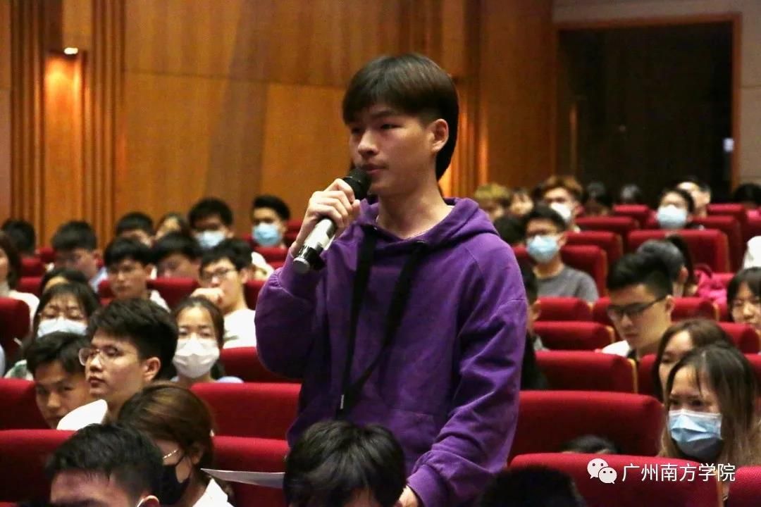 史光柱首先提到,他深知我校为广东乃至全国各地输送了各种人才,借此先对我校辛勤工作的老师以及努力学习的同学们致以崇高敬意。随后,他以“要做一名胸怀家国情怀的人才”为目标引出第一部分内容,深入开展党史、军史和国史学习的教育。