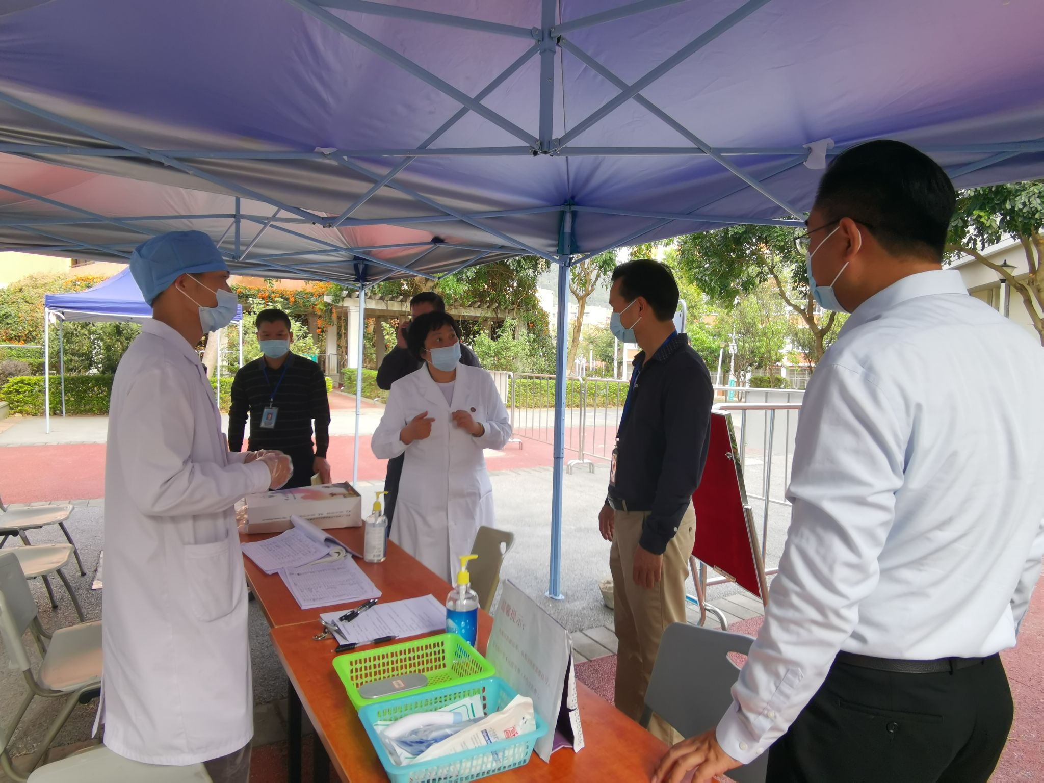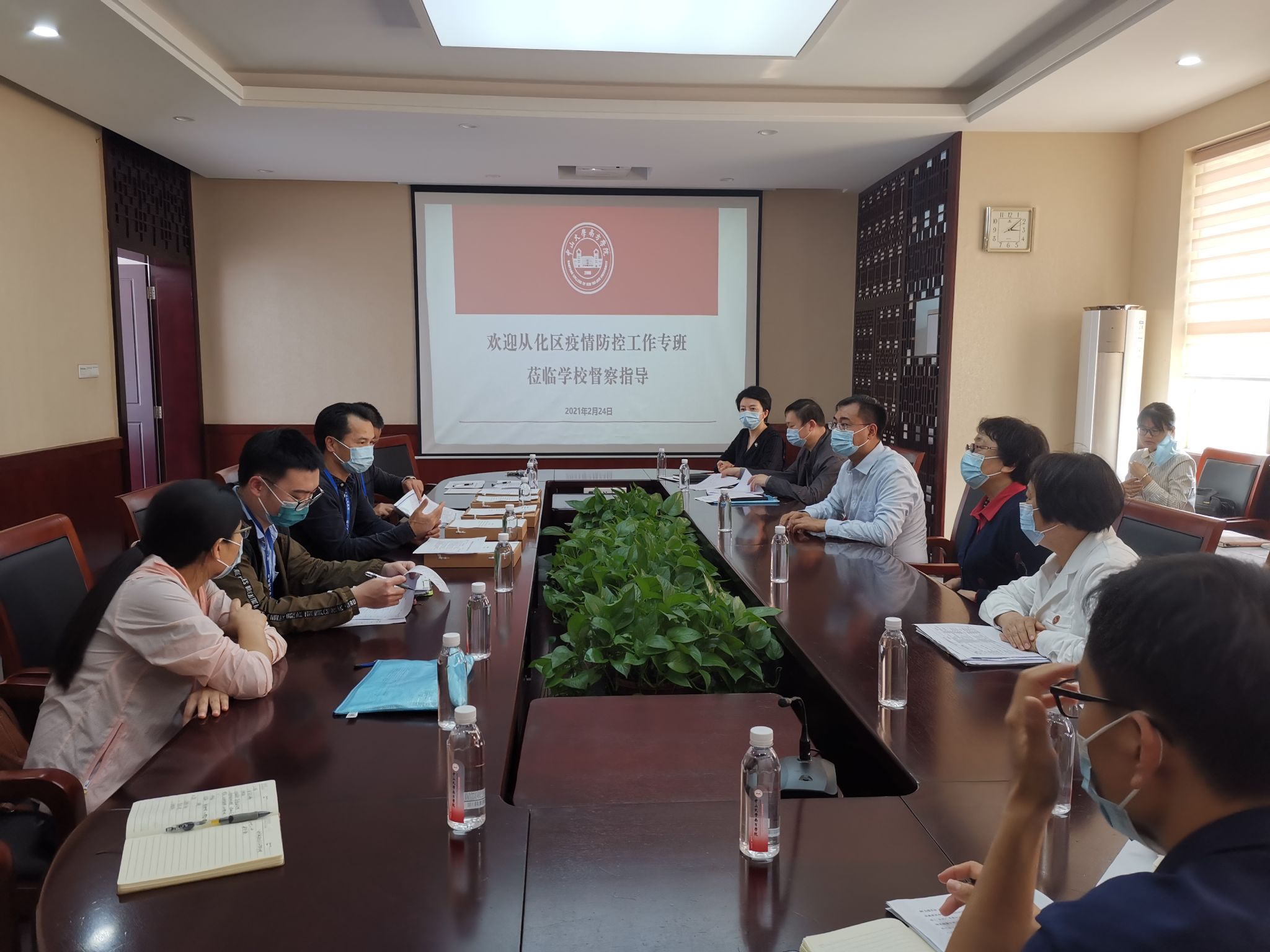 为确保我校疫情防控、新学期开学各项工作有序推进,2月24日下午,从化区疫情防控专班工作组一行5位领导莅临我校,对学校2021春季学期开学准备工作进行督查指导并深入了解我校新学期有关疫情防控相关工作。学校常务副校长、党委副书记唐燕及相关部门负责人陪同此次督查。