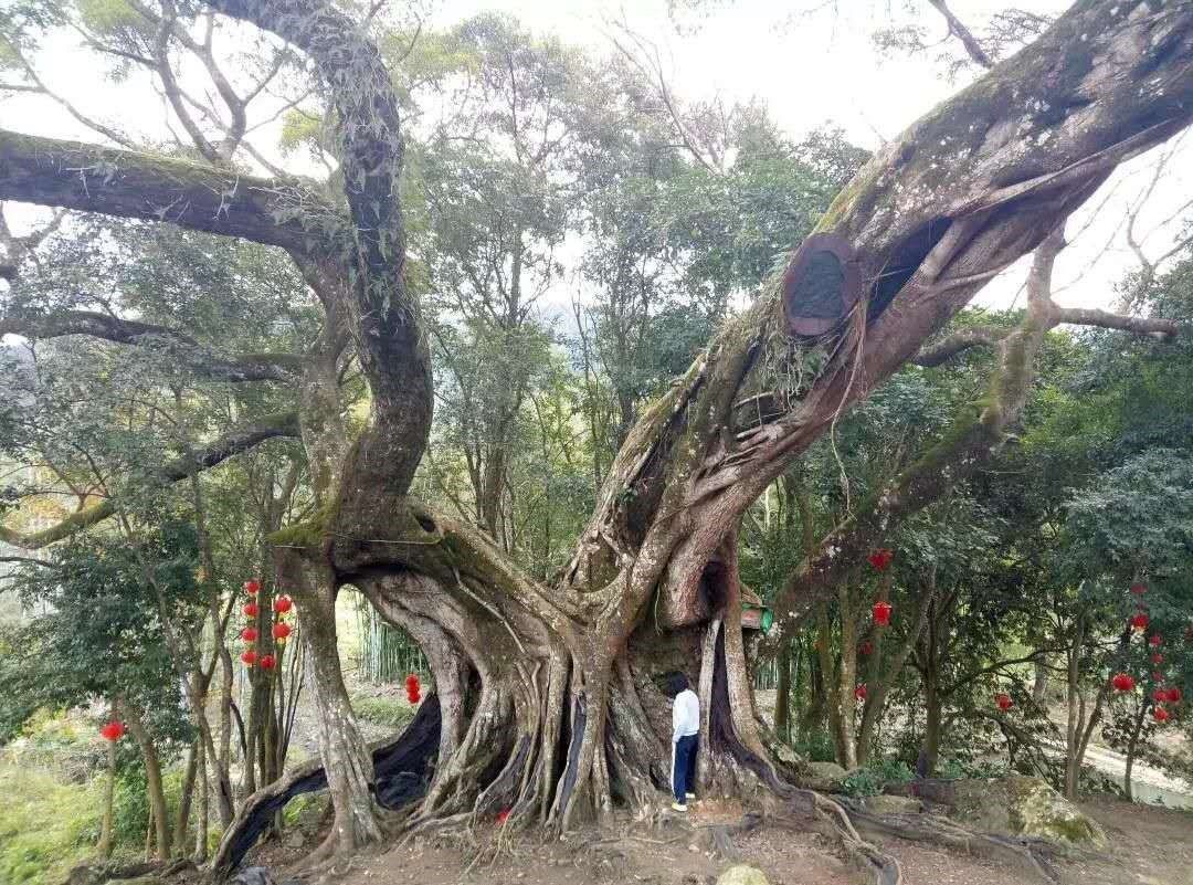 这是一棵有一千多年历史的古榕。这棵榕树枝干壮实,叶茂如盖,舒展的树冠盖地逾百平方米,四季常青,形成天然的凉亭。古榕以她坚实的根基、挺立的身躯、宽大的肢膀,千百年来呵护着当地百姓的一方安宁。当地百姓认为:凡有古榕生长的地方都是风水宝地,榕树能保佑着这方百姓世世代代安居乐业。