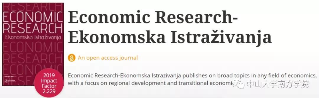 Economic Research-Ekonomska Istrazivanja》是社会科学引文索引(Social Sciences Citation Index, SSCI)收录期刊。根据JCR报告(Journal Citation Reports,期刊引证报告),该期刊的2019年影响因子为2.229,排名经济学类期刊Q2(前25%-50%)。