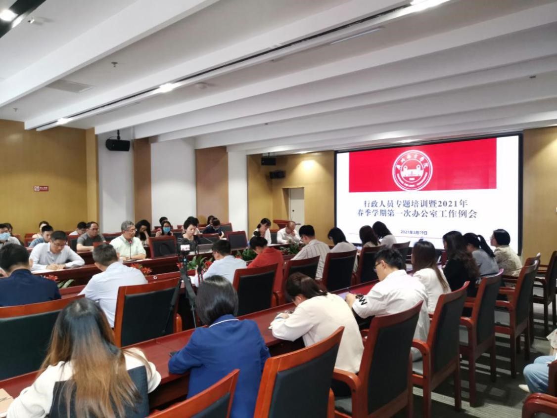 3月19日,我校在综合楼第一会议室召开学校行政人员专题培训暨2021年春季学期第一次办公室工作例会。