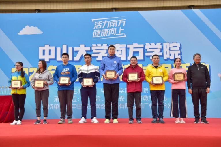 12月23日下午,中山大学南方学院2020年师生环校长跑活动在学校综合楼广场鸣笛起跑。校长喻世友,党委书记李建超,常务副校长、副书记唐燕,副校长龚鸣,财务总监刘振宏等校领导和各院系、部门工会近900名师生16支队伍参加此次长跑活动。起跑及颁奖仪式由体育教学中心主任何江海教授主持。