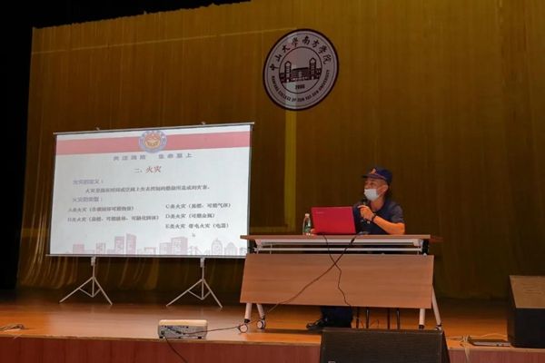 在演练活动之前,从化区消防救援大队为现场参练人员带来了一场专业的消防安全知识讲座,并从消防安全知识、紧急情况报警、应急逃生三个方面,向大家普及了有关燃烧、火灾与灭火的知识。讲座还详细介绍了常见灭火器材的使用方法,并结合视频现场演示了应急逃生技巧。通过对某高校宿舍火灾案例的分析,再次呼吁广大师生注意宿舍用电安全,正确使用电器。