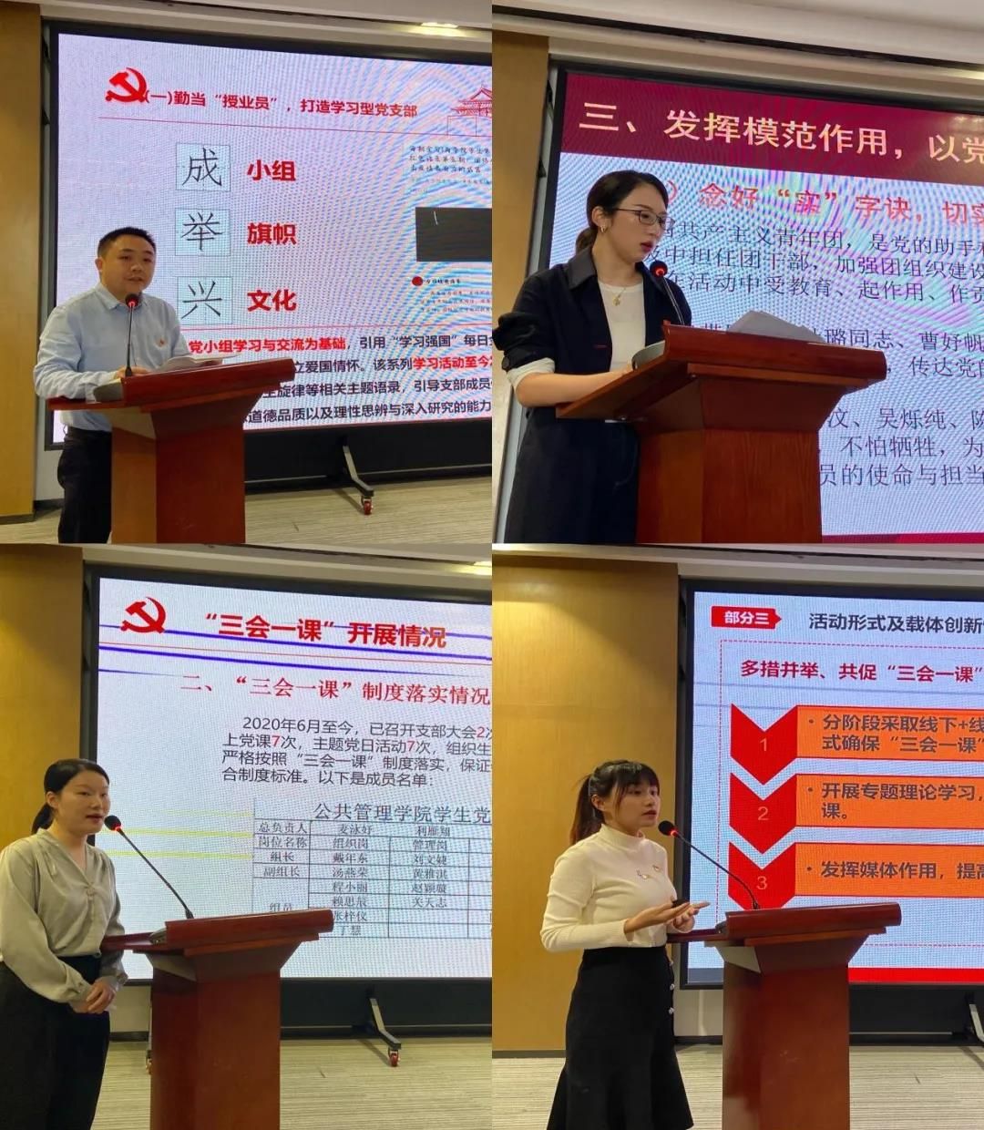 各支部工作汇报结束后,唐燕常务副校长、副书记在总结发言中指出:“三会一课”制度检查是我校党委领导下的一项特色亮点工作,通过几年来的探索学习,学校党建工作夯实了基础,积累了经验,本次“三会一课”制度落实情况检查第一次采取现场评分的方式进行,是创新也是摸索。下一步,希望党建工作部继续完善细化“三会一课”相关工作,形成清晰规范的工作制度与模板,提升我校“三会一课”品牌建设影响力,促进我校党建工作再上新台阶;打造党支部自己的“党建品牌”将成为明年以及往后“三会一课”工作的重点,各党支部要不忘初心、牢记使命,将所有工作都内化于心、外化于行,不浮于表面,将“三会一课”制度落到实处。接下来,党委将对本次优秀案例将进行表彰,以进一步复制和推广。