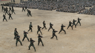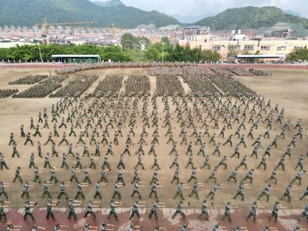 随后的军训科目汇报表演中,组成旗语和匕首操方阵的数百名女同学,步伐矫健,英姿飒爽,激荡着青春活力;