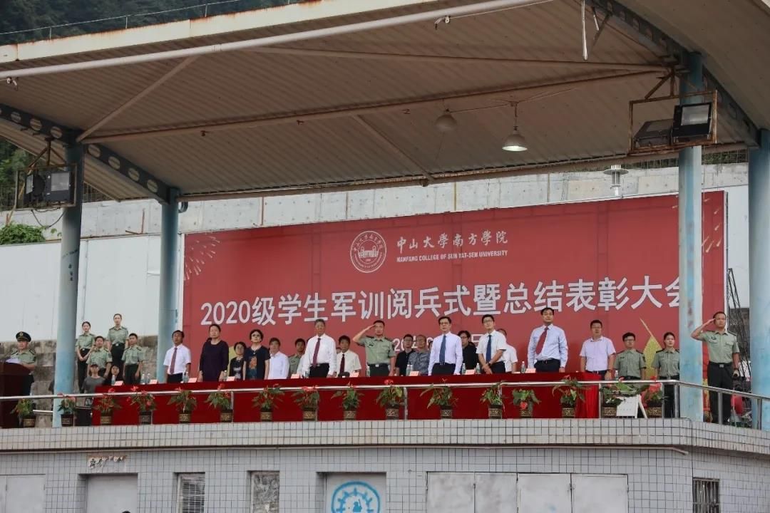 9月29日下午,中山大学南方学院2020级新生军训阅兵式暨总结表彰大会在西区田径场隆重举行。学校领导班子,承训单位代表,各院系代表以及一年级学生工作部代表出席大会,大会由一年级学生工作部部长程爱民主持。