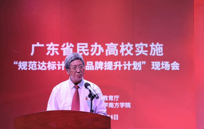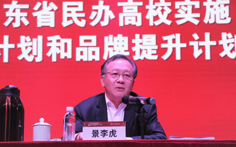 随后,省教育厅景李虎厅长讲话,他充分肯定了民办高校对我省高等教育发展作出的积极贡献,分析了民办高校目前面临的机遇和挑战,指出了存在的问题和短板。他在讲话中指出,民办学校“规范达标和品牌提升计划”是全省教育大会提出的重点任务之一,各民办高校要以“双计划”为总抓手,解决坚定社会主义办学方向,落实民办高校主体责任,完善治理体系、提高治理能力,加强人才队伍建设,激活体制机制,打造一批优质品牌等六个关键问题,整合资源,激发活力,打造特色品牌,推进内涵发展,推动广东从民办高等教育大省向强省迈进。