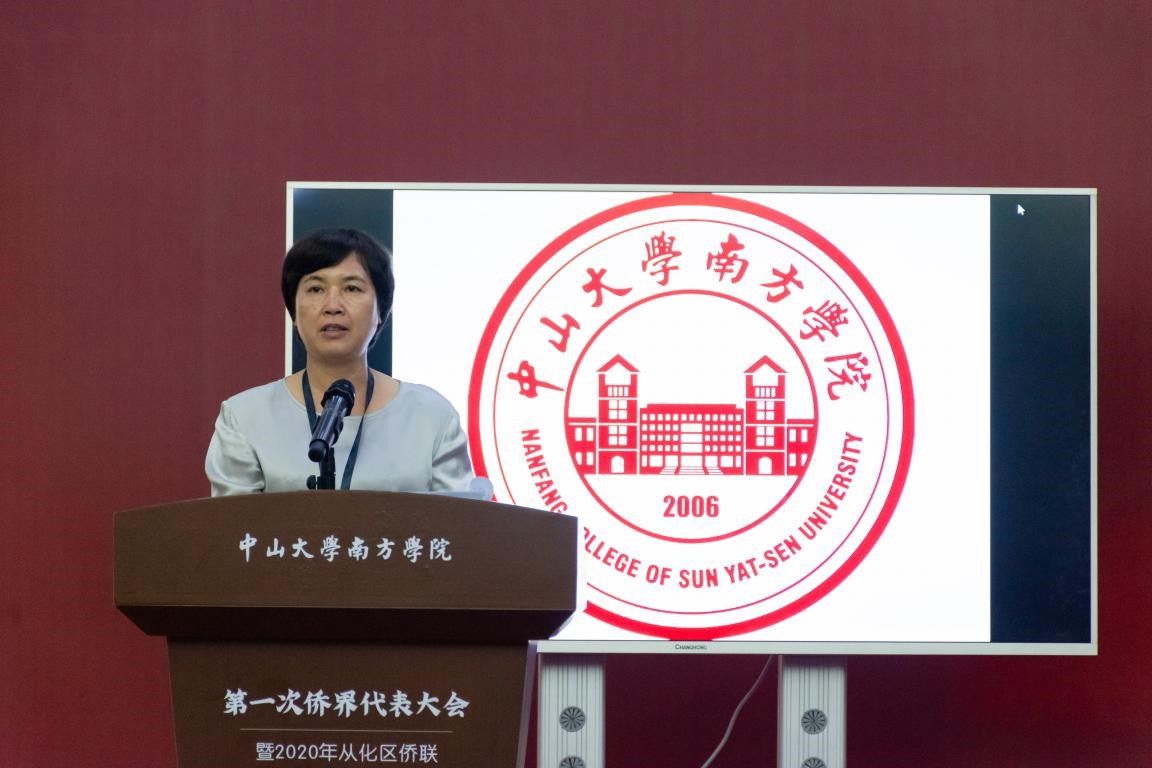 广州市侨联副主席吴少姬女士,广东省侨联二级调研员谭一峰,从化区委常委、统战部部长孙柱,从化区人大常委会副主任卢凤萍,从化区政协党组成员、副主席李启和,中山大学南方学院党委书记李建超,中山大学南方学院副校长黄南松出席会议,广州市侨联、从化区侨联近80余位代表参加了本次会议。会议由学校党建工作部部长刘佳主持。