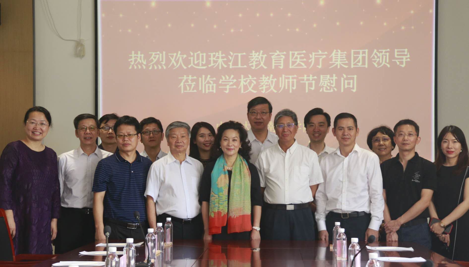 三尺讲台勤耕耘,桃李芬芳又一年。9月10日,值此第三十六个教师节到来之际,珠江教育医疗集团执行董事兼联席总裁续红女士一行九人莅临学校进行教师节慰问,对学校广大教职员工致以深切的问候和衷心的感谢。校长、党委副书记喻世友,党委书记李建超,常务副校长、党委副书记唐燕等全体校领导出席座谈会。