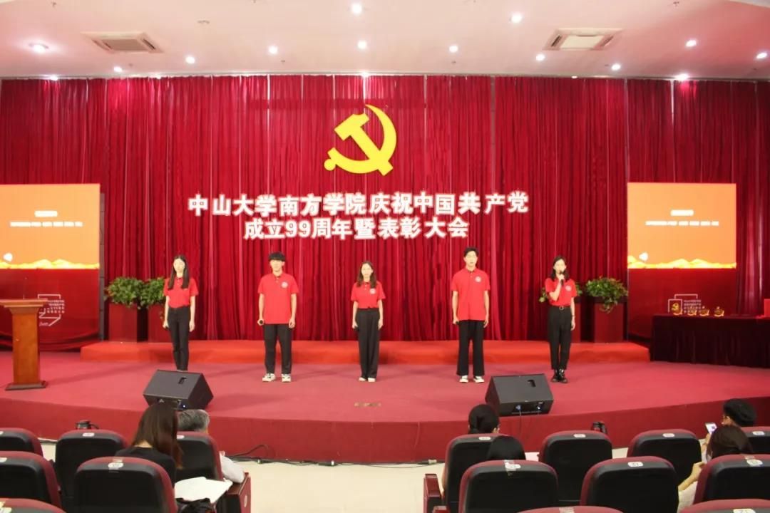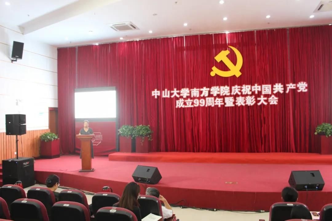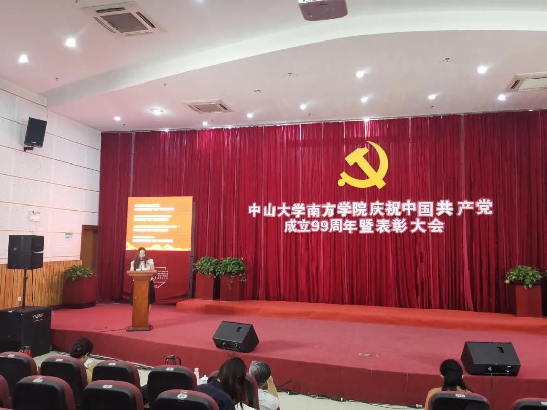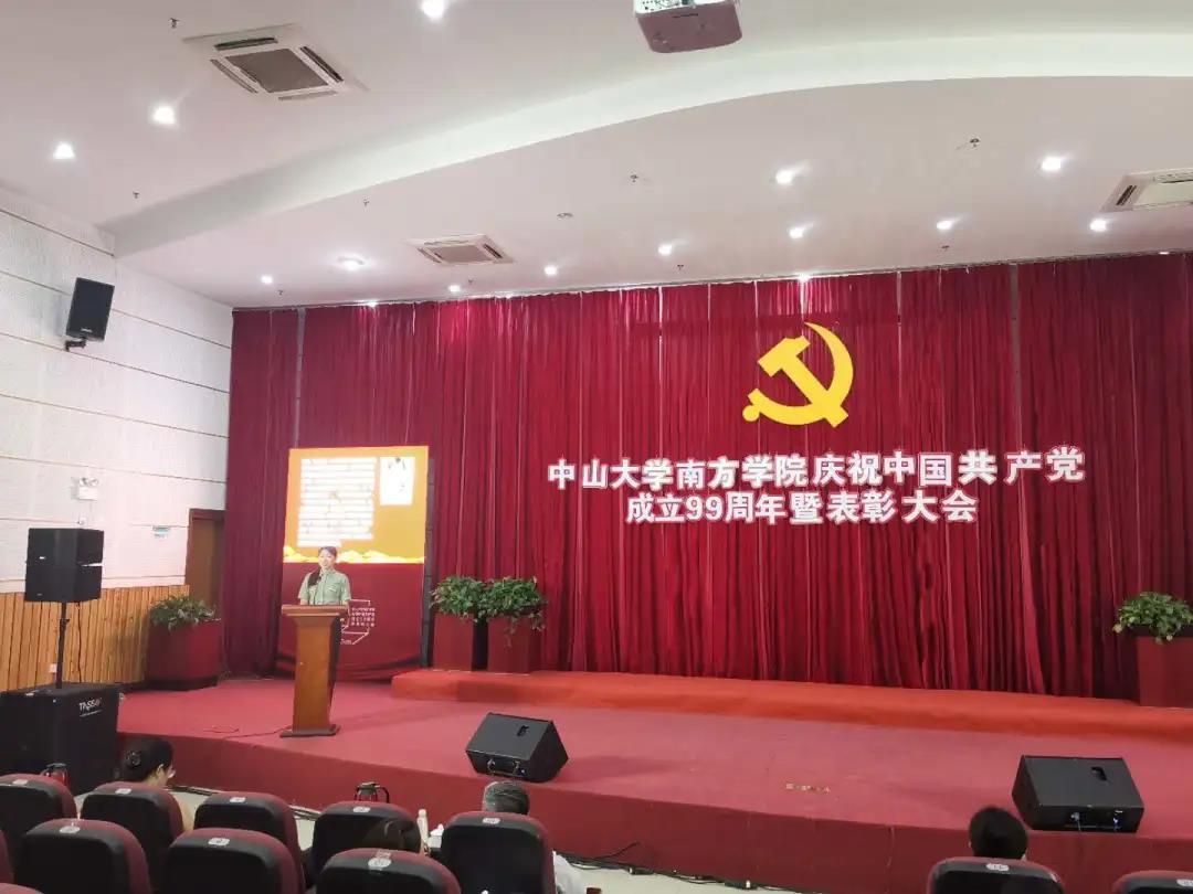 李建超书记宣读了《中共中山大学南方学院委员会关于表彰2019-2020学年优秀共产党员、优秀党务工作者和先进党组织的决定》。在中国共产党成立99周年之际,为进一步加强我校党的建设和思想政治工作,激励广大党员在我校加快推进“建设国内一流民办高校”进程中做出更大的贡献。经学校研究,决定授予陈景勇等28名同志“优秀共产党员”称号;授予蔡丛等12名同志“优秀党务工作者”称号;授予电气学生第三党支部等4个基层党组织“先进党组织”称号。