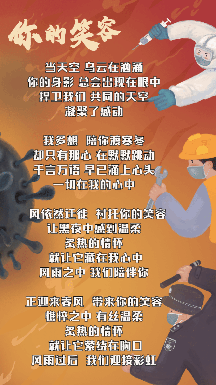 2017级公共管理学系刘瀚林同学与2017级音乐系梁祖瑜同学为大会带来南方学子原创战“疫”歌曲《你的笑容》,用旋律凝聚力量,用歌声礼赞英雄,向抗 “疫”者们致敬。