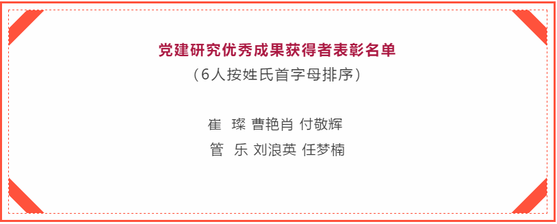 李建超书记表示,过去一年,党建研究工作取得多项成果,经学校党委与党建研究课题评审小组评审研究,决定授予崔璨等6名同志为党建研究优秀成果获得者。