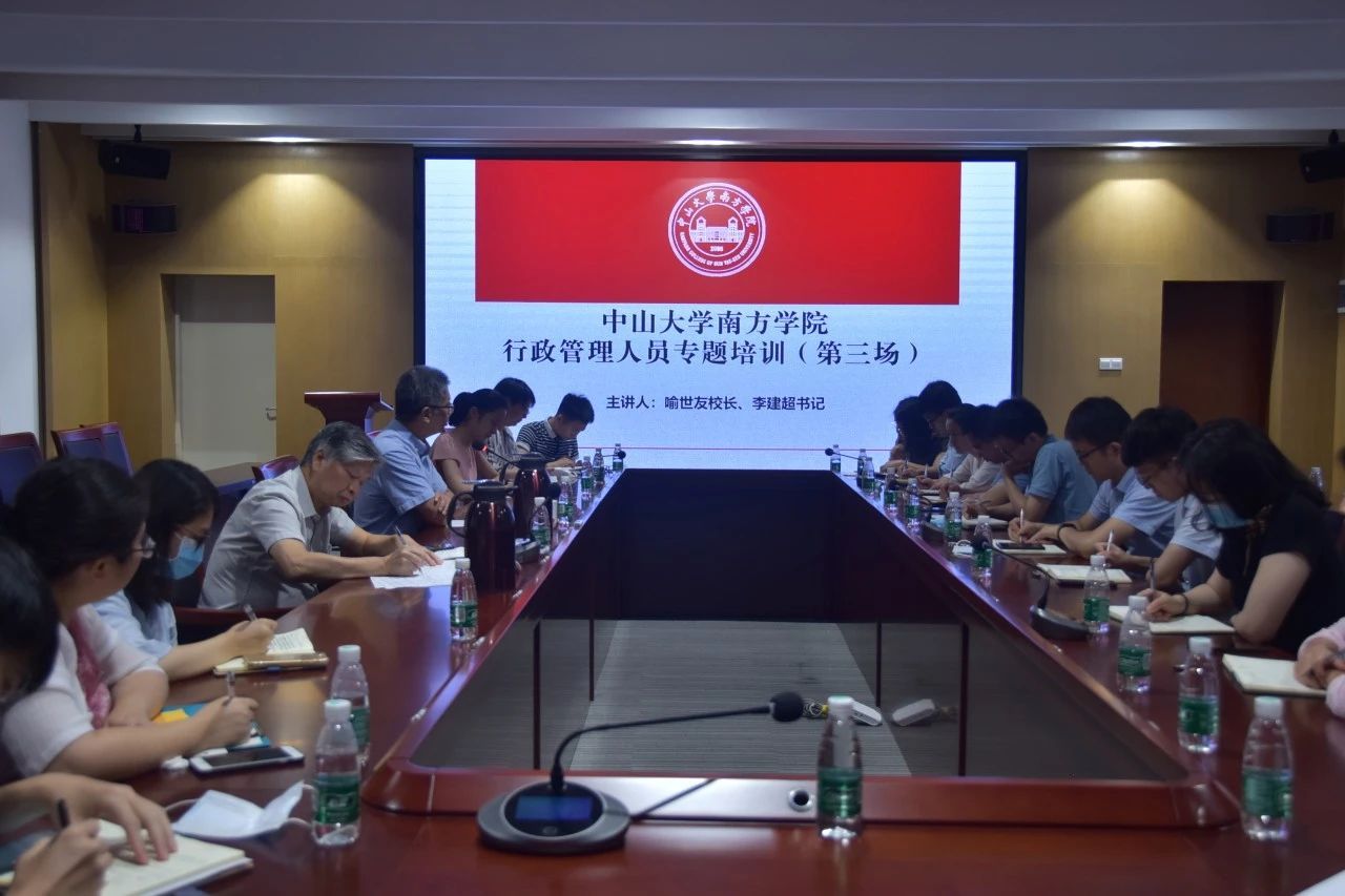 为全面提升我校年轻干部的职业素养,加强年轻干部服务大局的责任感、使命感,培养年轻教职员工积极向上的职业精神,7月21日上午,以《年轻干部的成长历练与责任担当》为主题的中山大学南方学院行政管理人员第三批专题培训在新综合楼第一会议室举行。校长、党委副书记喻世友,党委书记李建超为本次培训会主讲人,学校各行政职能部门科长、副科长等参与培训。此次培训以主讲人授课、参与人员集体讨论的形式展开。
