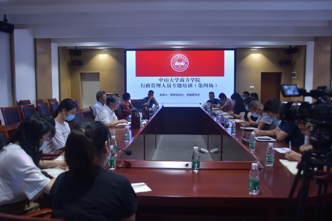 为全面提升我校年轻干部的职业素养,加强年轻干部服务大局的责任感、使命感,培养年轻教职员工积极向上的职业精神,7月22日上午,以《年轻干部的成长历练与责任担当》为主题的中山大学南方学院行政管理人员第四批专题培训在新综合楼第一会议室举行。校长、党委副书记喻世友,党委书记李建超为本次培训会主讲人,学校大后勤职员(校园管理部、保卫部、广东南苑投资发展有限公司)等参与培训。此次培训以主讲人授课、参与人员集体讨论的形式展开。