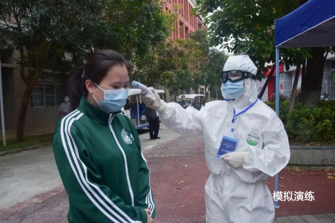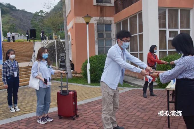 主要针对学生返校当天,车辆进入校园、学生宿舍体温检测、食堂用餐、教室上课等日常活动进行演练。