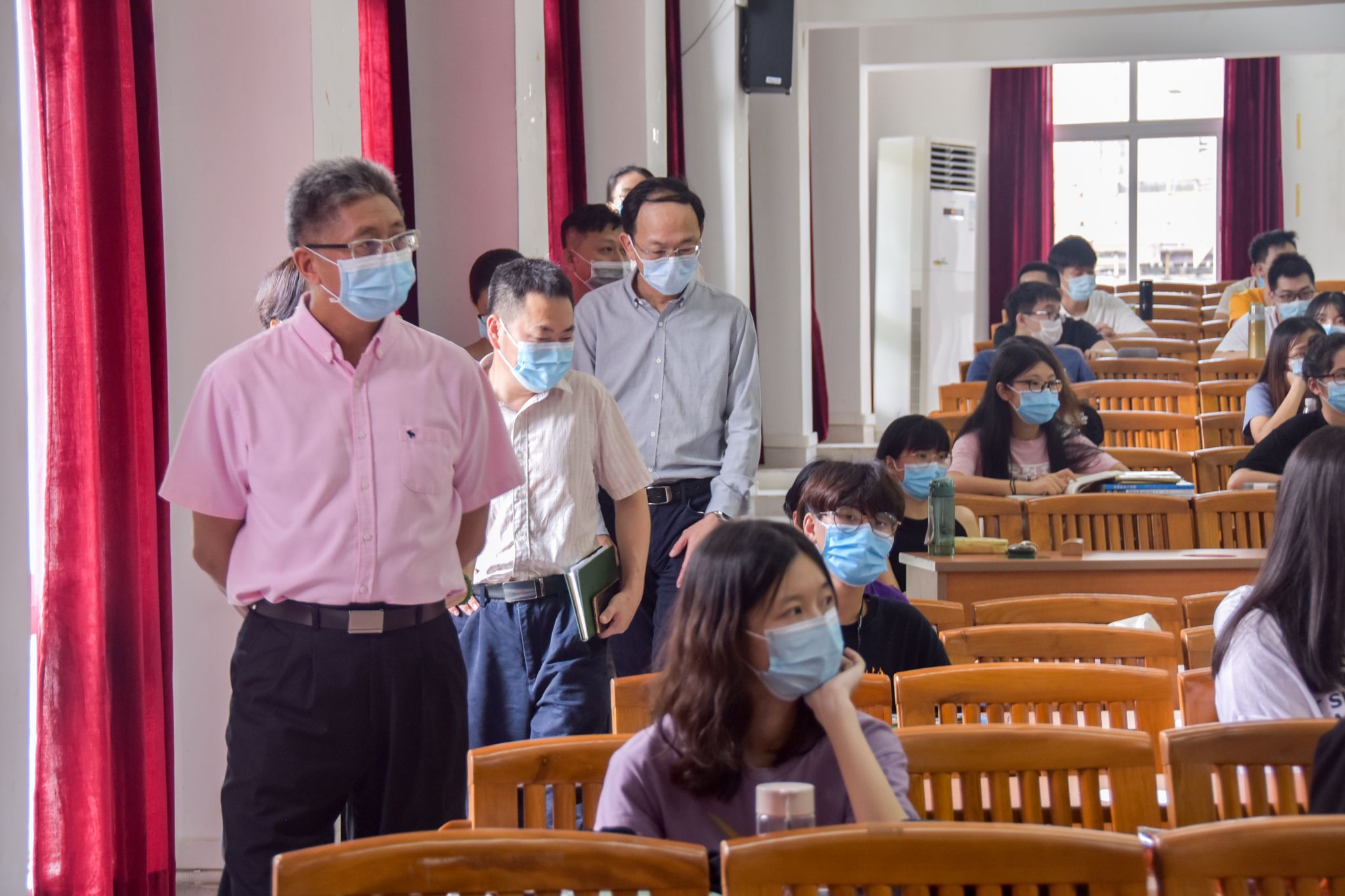 5月25日开始,我校按“六分”原则安排学生分批分期有序返校, 6月10日顺利完成10个批次学生返校工作。学生返校后经过调整适应,便进入课堂教学阶段。6月15日是课堂教学第一周,学校领导高度重视,校长喻世友,党委书记李建超,常务副校长、副书记唐燕,副校长黄静波,副校长黄南松等校领导分别带队检查了10个教学单位复课情况,巡查了44个教学班课堂情况。教学单位、教务部、学工部、团委及院系学工办等单位负责人参加了教学检查。