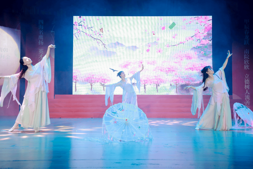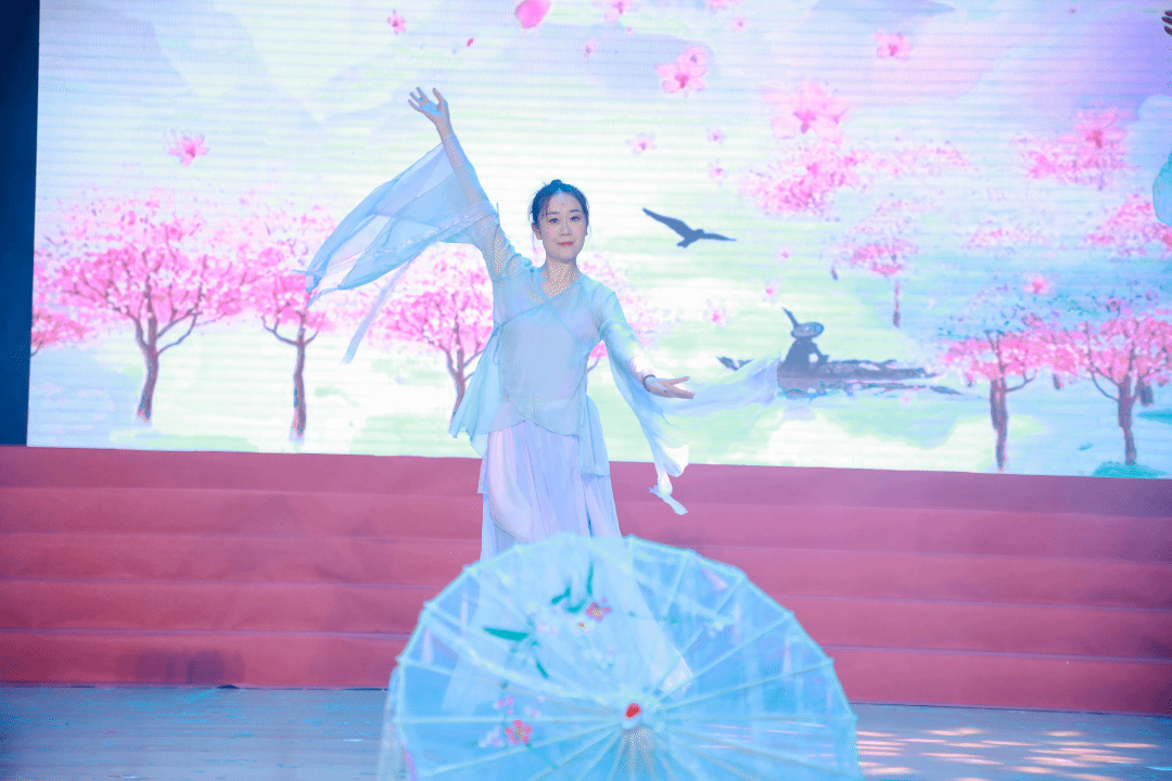 ▲文学与传媒学院带来舞蹈《江山水意》