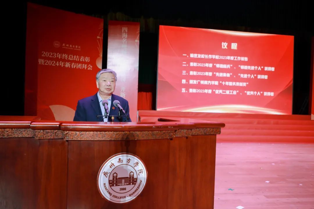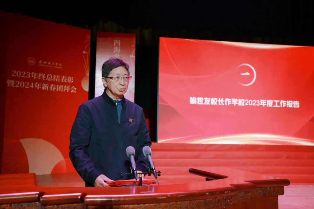 会上,喻世友校长回顾了过去一年中学校在学科专业建设、师资队伍建设、人才培养、科研、社会服务、对外合作、校园建设等方面取得的累累硕果。