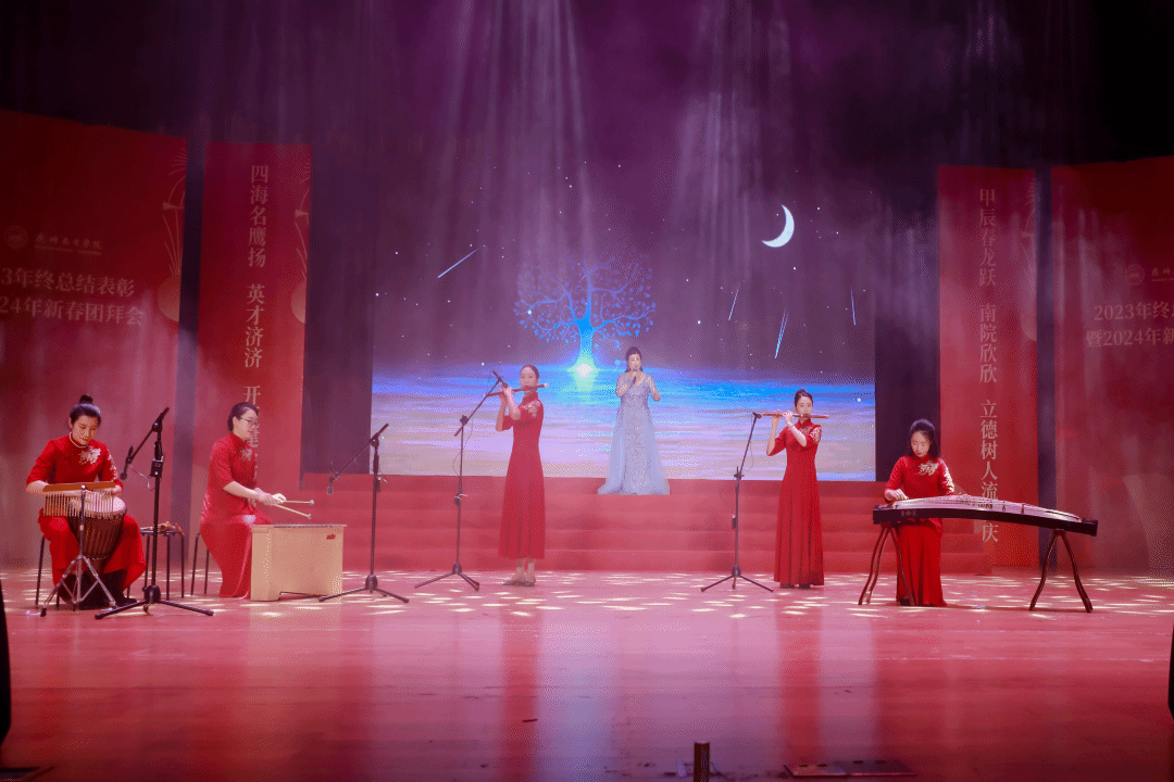 校领导与教职工们欢聚一堂,总结学校2023年度主要工作,表彰先进,凝聚共识,还有师生同台献艺,共庆新春。