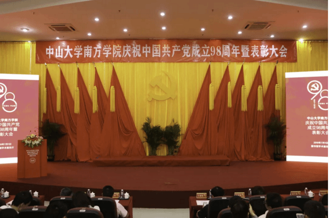 随后,唐燕常务副校长、副书记宣布“七一”表彰大会开幕,全体同志起立奏唱国歌。李建超书记宣读了《中共中山大学南方学院委员会关于表彰2018-2019学年优秀共产党员、优秀党务工作者和先进党组织的决定》。他提到,在过去一年中,我校各党组织和广大共产党员在学校党委的有力领导下,深入学习贯彻落实党的十九大精神,以习近平新时代中国特色社会主义思想为指导,认真学习贯彻习总书记在广东考察重要讲话精神,“两学一做”学习教育常态化、制度化精神。全面贯彻党的建设,积极投身学校转型发展,不忘初心、牢记使命、坚定信念,取得了显著成绩,充分发挥了党支部的战斗堡垒作用和共产党员的先锋模范作用,涌现出一批优秀共产党员和先进基层党组织。在中国共产党成立98周年之际,为进一步加强我校党的建设和思想政治工作,激励广大党员在加快推进我校建设国内一流民办高校进程中做出更大的贡献,学校党委决定对邓涛等26名优秀共产党员,马思伟等12名优秀党务工作者,商学院党总支等4个先进基层党组织予以表彰。