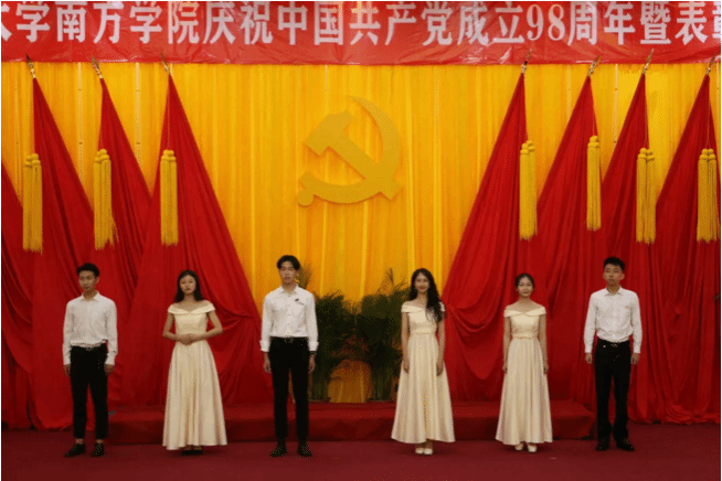 大会伊始,全体师生一同观看了“不忘初心,牢记使命”中山大学南方学院党建工作专题片,回顾了学校基层党建工作成果,一齐展望了未来工作的前进方向。来自文学与传媒学院的林楚桐、廖妙韵、郭子怿、张威、郑好、欧天晗六位同学深情朗诵了《盛世中国》,文学与传媒学院风雅合唱团精彩演绎了《我和我的祖国》,用朗诵和歌声表达着南方学院师生爱党爱国的火热情怀。