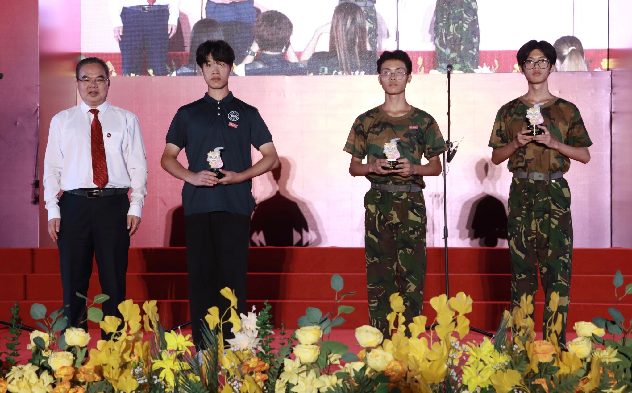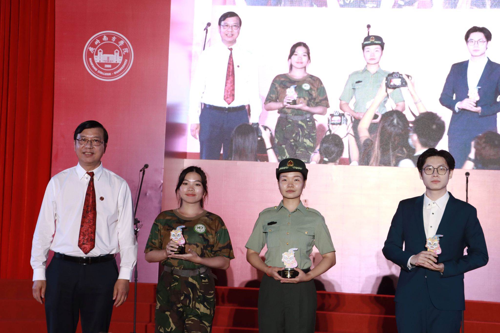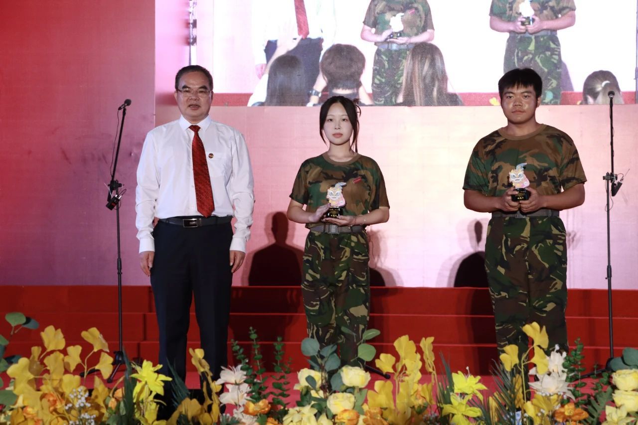 黄南松副校长为获”表演奖“军训团颁奖(卢璇 摄)