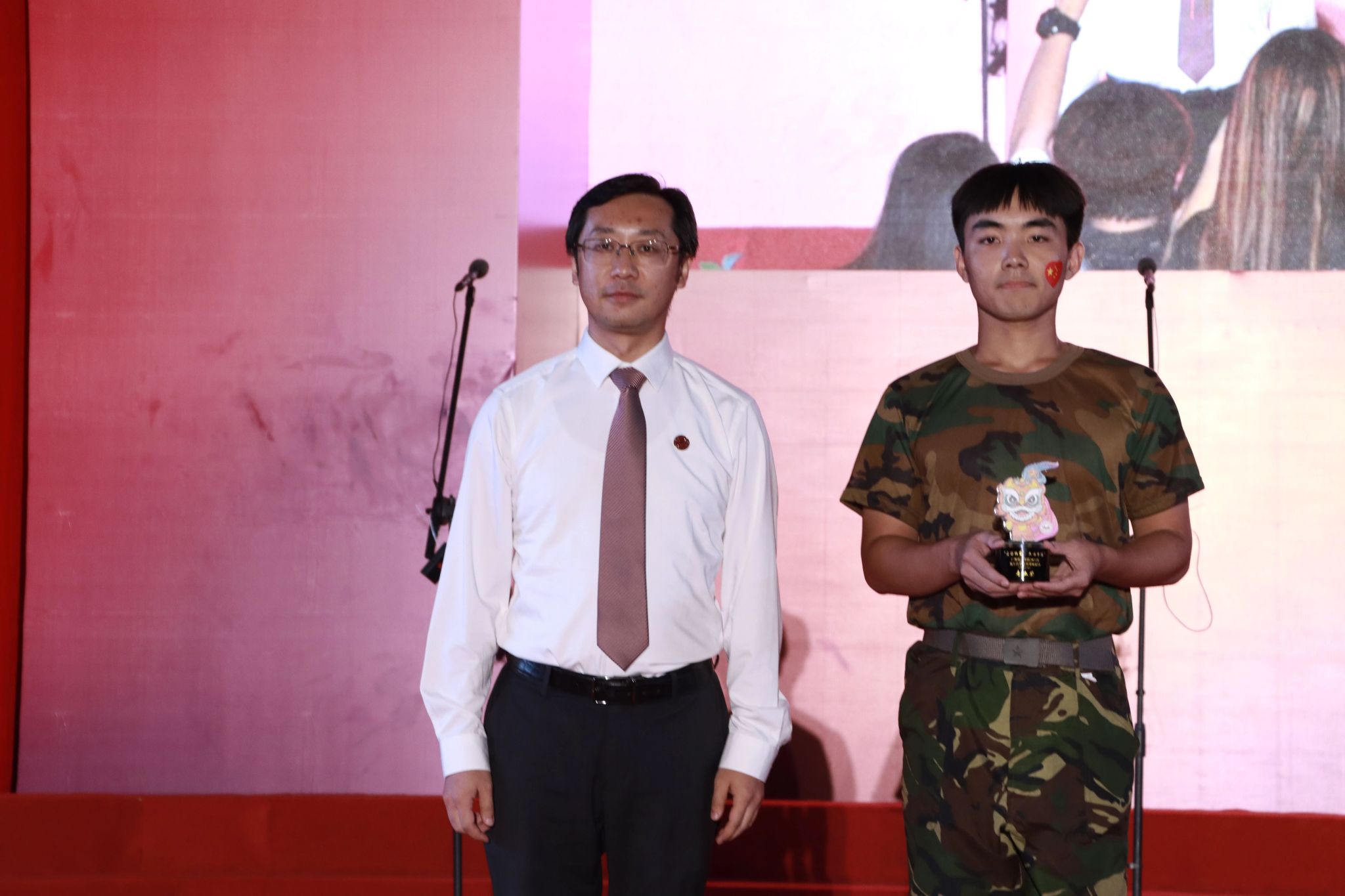 植秀聪副书记、副校长为获”创意奖“军训团颁奖(卢璇 摄)