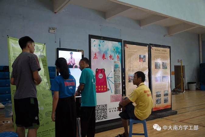 迎新期间,步入东区体育馆,一块块富有设计、色彩饱满的海报、展板映入眼帘,它们整齐地立于“绿色通道”办理点的两侧,展示了中山大学南方学院近年来“励志强能”资助育人项目以及各院系家风活动开展的丰硕成果,也向前来报到的新生及家长诉说着南方学院独一无二的自强不息的励志事迹和温暖人心的家风故事。不少新生和家长在海报、展板前驻足认真观看,细细欣赏。