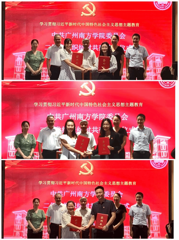 会议第二阶段,学校举行部分二级党组织结对共建签约仪式。在与会领导的共同见证下,体育中心党支部与会计学院党总支、外国语学院党总支与商学院党总支、云康医学与健康学院直属党支部与电气与计算机工程学院党总支分别签订了结对共建协议书。此次签约仪式在原有机关党总支10个党支部与4个院系党总支10个学生党支部开展“手拉手”一对一共建的基础上,进一步扩大党建结对共建工作的覆盖面,深化“资源共享、优势互补、共鉴共促”组织效能,推进“组团式”党建帮扶工作走深走实,为党建引领学校各项事业高质量内涵式发展提供坚强的组织保障。