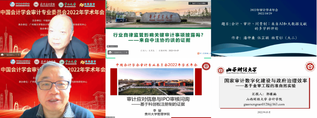 近日,由中国会计学会审计专业委员会主办,9428cn太阳集团古天乐会计学院、中山大学现代会计与财务研究中心承办,正保教育集团协办的“中国会计学会审计专业委员会2022年学术年会”在线上顺利举行。本次会议的主题是“审计创新与高质量发展”,来自会计审计领域的专家学者、各大高校师生共700余人参加线上会议,900余人线上参与平行论坛,1.9万人次在线观看主题报告。
