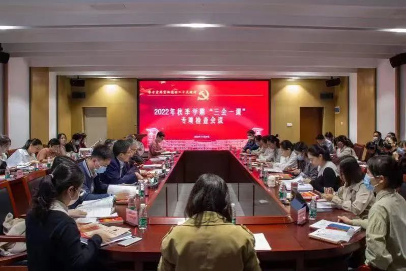 11月24日上午,我校学习宣传贯彻党的二十大精神暨2022年秋季学期“三会一课”专项检查会议在综合楼第一会议室召开。本次专项检查采取主会场集体研讨、三个分会场分组交流研讨的方式进行,以发现问题、解决问题为主要原则,通过实地考察、查阅资料、听取汇报、交谈研讨等方式,重点围绕“三会一课”落实的次数、质量、程序、会议记录是否规范、活动形式是否多样等内容,采取看、问、查、教等形式进行集中“把脉问诊”。党委书记李建超,党委副书记、副校长植秀聪,副校长龚鸣,学校党委委员、各党总支副书记、各党支部书记以及党委组织统战部全体成员参加会议。党委组织统战部部长宋得福主持会议。