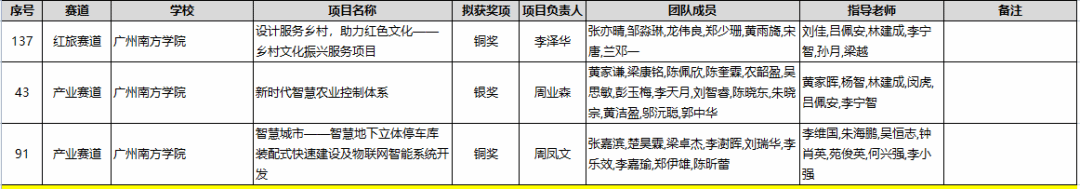 项目获奖名单