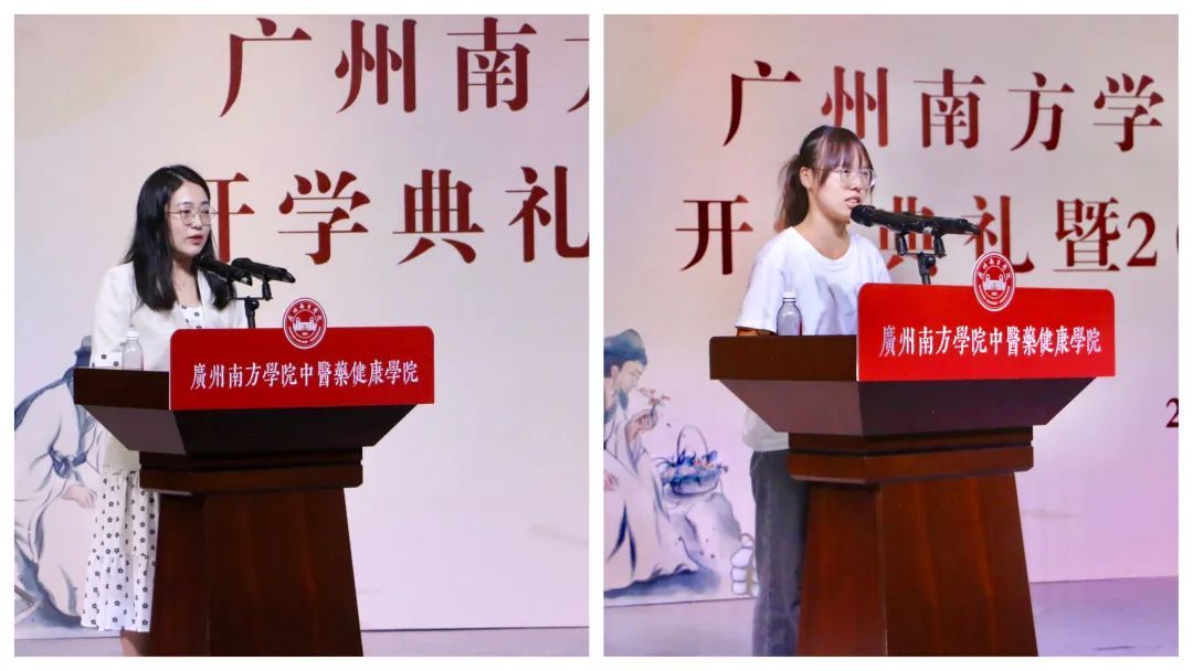 王剑屏同学作为2022级本科新生代表发言。她认为,作为一名新时代青年,有责任和义务背负人类健康发展的使命继续前进,将中医药这一瑰宝发扬光大。