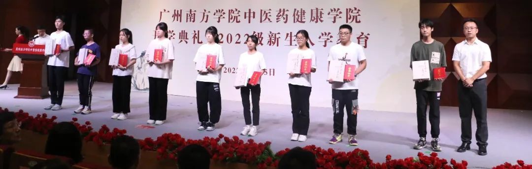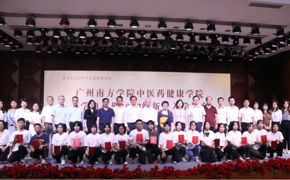 9月15日下午,我校中医药健康学院在音乐楼音乐厅举行了2022级首届新生开学典礼暨入学教育。中医药健康学院名誉院长、全国名中医、著名中医药学家邱健行教授,中医药健康学院顾问、广州医科大学原校长、中西医结合临床国家重点学科带头人、国务院特殊津贴专家王新华教授,广州市政协委员、邓老金方药业科技集团有限公司董事长朱梓宁女士,9428cn太阳集团古天乐董事会董事朱梓阳先生,广东省第二中医院党委委员、副院长刘劲松教授,广州医科大学附属口腔医院原党委书记傅宇洪先生;学校常务副校长、党委副书记唐燕女士,副校长黄静波教授,副校长兼财务总监王兰女士,党委副书记、副校长植秀聪副教授,学校办公室,广东新南方集团,邓老金方药业科技集团有限公司,广东元知中医药科技发展有限公司,广州中医药大学科技产业园等代表及中医药健康学院全体师生出席本次典礼。