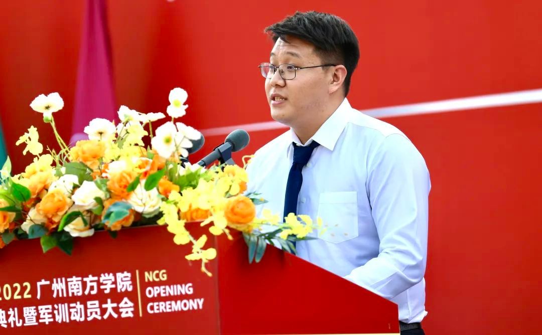 2019级商学院旅游管理专业的欧阳孝芃作为学生代表上台发言。欧阳孝芃同学关于如何用好大学四年,分享了“厚德笃行、真理严行、忏思砥行”三个关键词。他认为,“青年成就了时代,时代给予青年无限可能,南院学子应与时代发展紧密相连,在拼搏力行中彰显青春本色。”