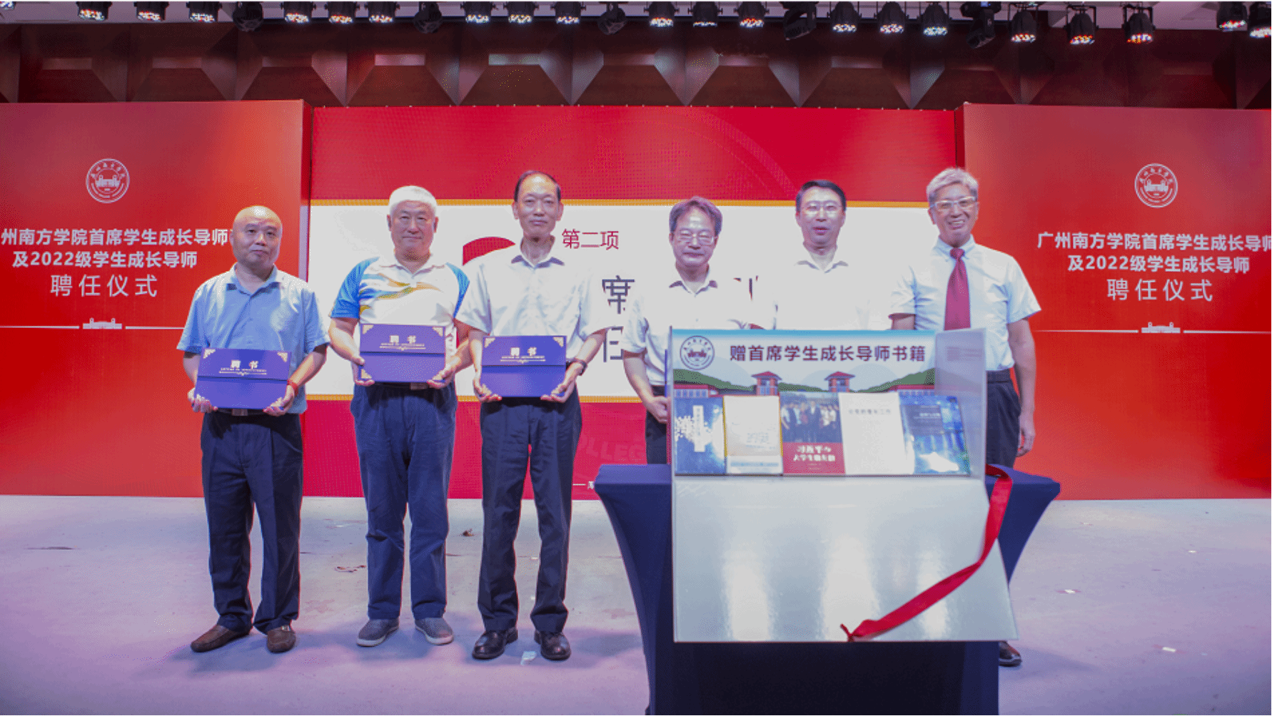 喻世友校长代表学校向首席学生成长导师及2022级新生成长导师表示祝贺。他在讲话中指出,多年来,南方学院遵循学生成长特点与规律,始终强调提升学生的“自我推动力”,呼吁“老师要回到老师”,助力学生自我成长、自我推动,破解“教书”与“育人”两张皮;具有丰富社会阅历的党政军民学各领域的贤达担任首席学生成长导师,将在指导青年教师及辅导员、推动其成长方面发挥重要的作用,是当前高校育人机制的创新尝试,是我校青年教职员队伍培养的一种创新性补充,也是学生培养工作的一种创新性补充。