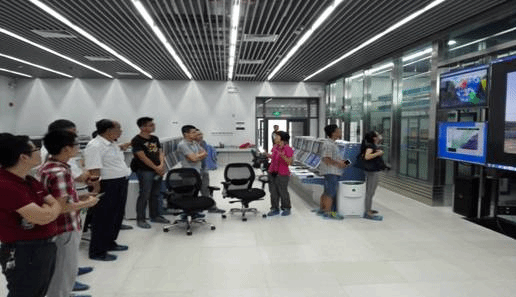 党员们首先参观了卫星数据接收大厅,观看了科普教育短片,并实地观察了卫星云图的接收过程,解开了卫星信号转变为云图信号的神秘面纱。“卫星所在的经纬度、轨道角度、太阳高度角,都是经过技术人员反复试验确定的,可以保障覆盖区域数据的精确性”,结合短片内容柯主任给大家做了细致的讲解。