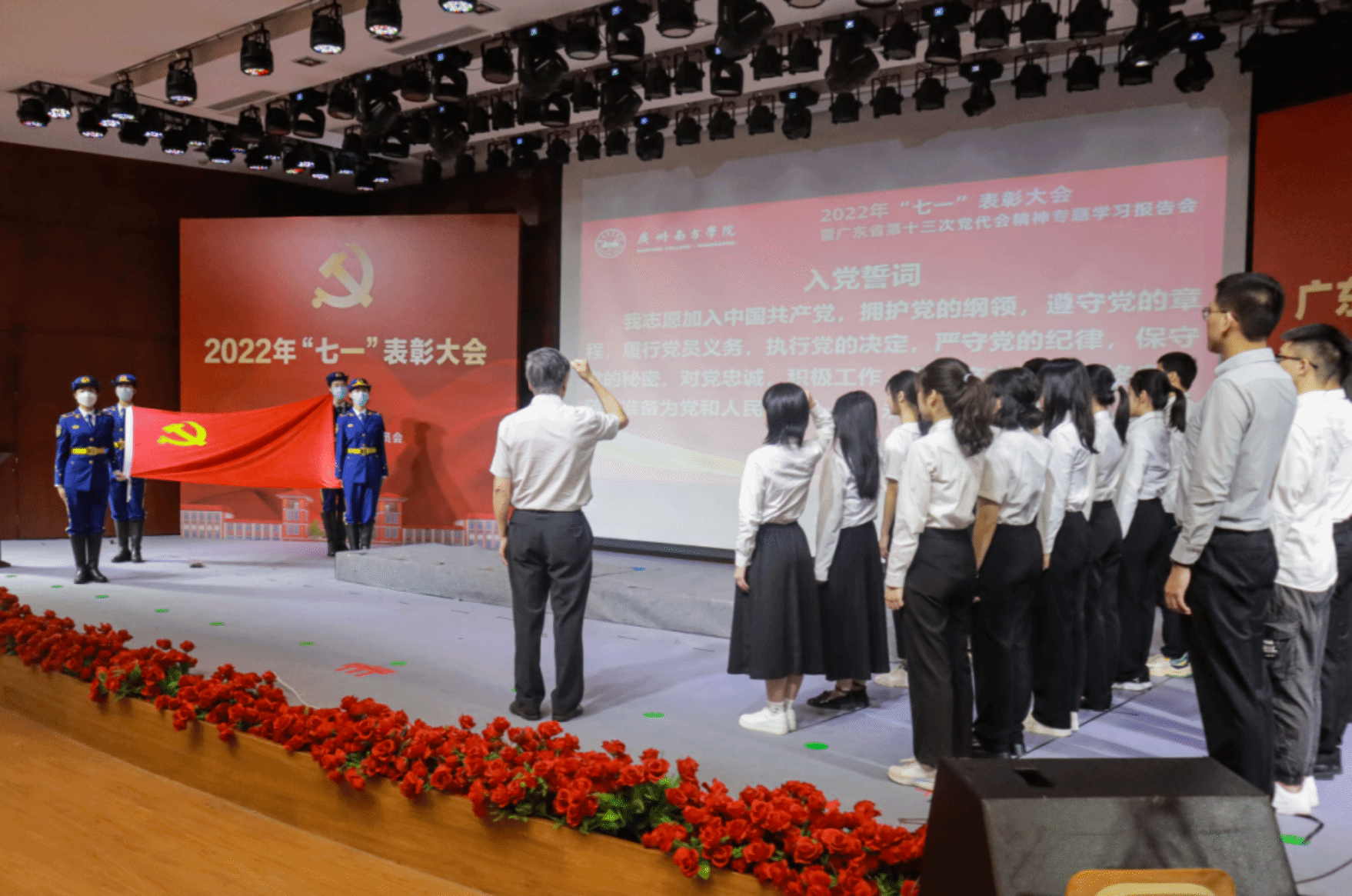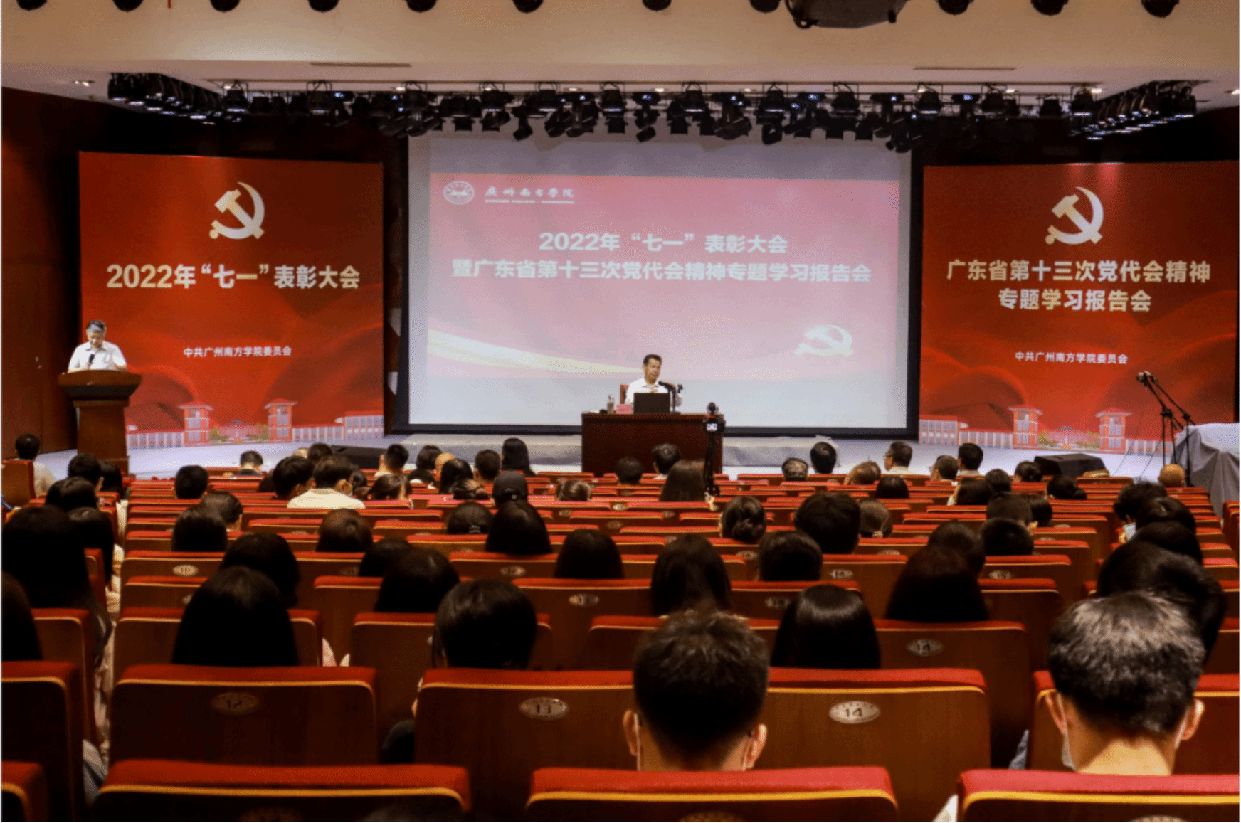 6月29日上午,我校在音乐厅隆重举行庆祝建党101周年“七一”表彰大会,并邀请到省第十三次党代会精神省委宣讲团成员、广东省社会科学院党组书记郭跃文作专题辅导报告。学校党政班子成员、校长助理、校党委理论学习中心组成员及教师党员代表、学生党员代表,受表彰的先进集体和先进个人代表,新党员代表共400余人参加了会议。会议由常务副校长、党委副书记唐燕同志主持。