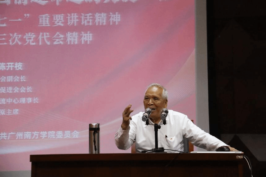 讲座中,陈开枝回顾了改革开放四十年以来国家经济、广东地区人民生活发生的翻天覆地的变化,用精准的数据和鲜活的事例论证了“改革开放是决定当代中国前途命运的关键一招”。他结合自己的工作、生活经历,声情并茂地讲述了广东改革开放的辛酸曲折。他阐述了深圳,珠海,汕头等经济特区的建立过程,展现了党中央、广东党员干部一路披荆斩棘、开拓创新的时代精神。他用生动的语言讲述了1992年接待邓小平同志南巡的经历,还原了“南方谈话”的历史细节,展示了一代伟人非凡的勇气和魄力。