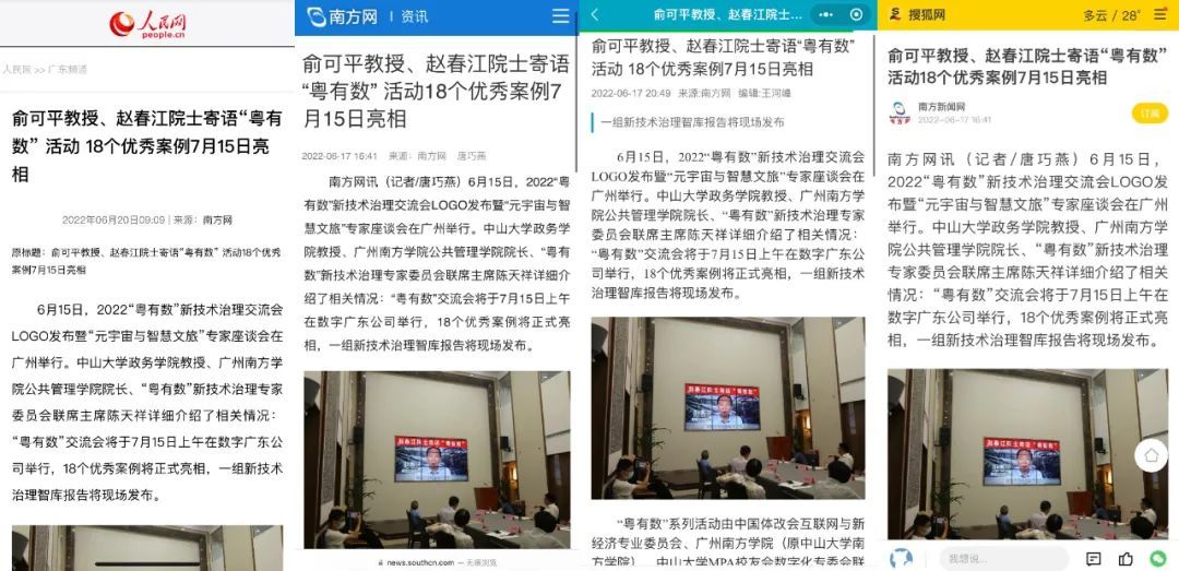 本次2022“粤有数”新技术治理交流会LOGO发布暨“元宇宙与智慧文旅”专家座谈会反响良好,得到多方转载。