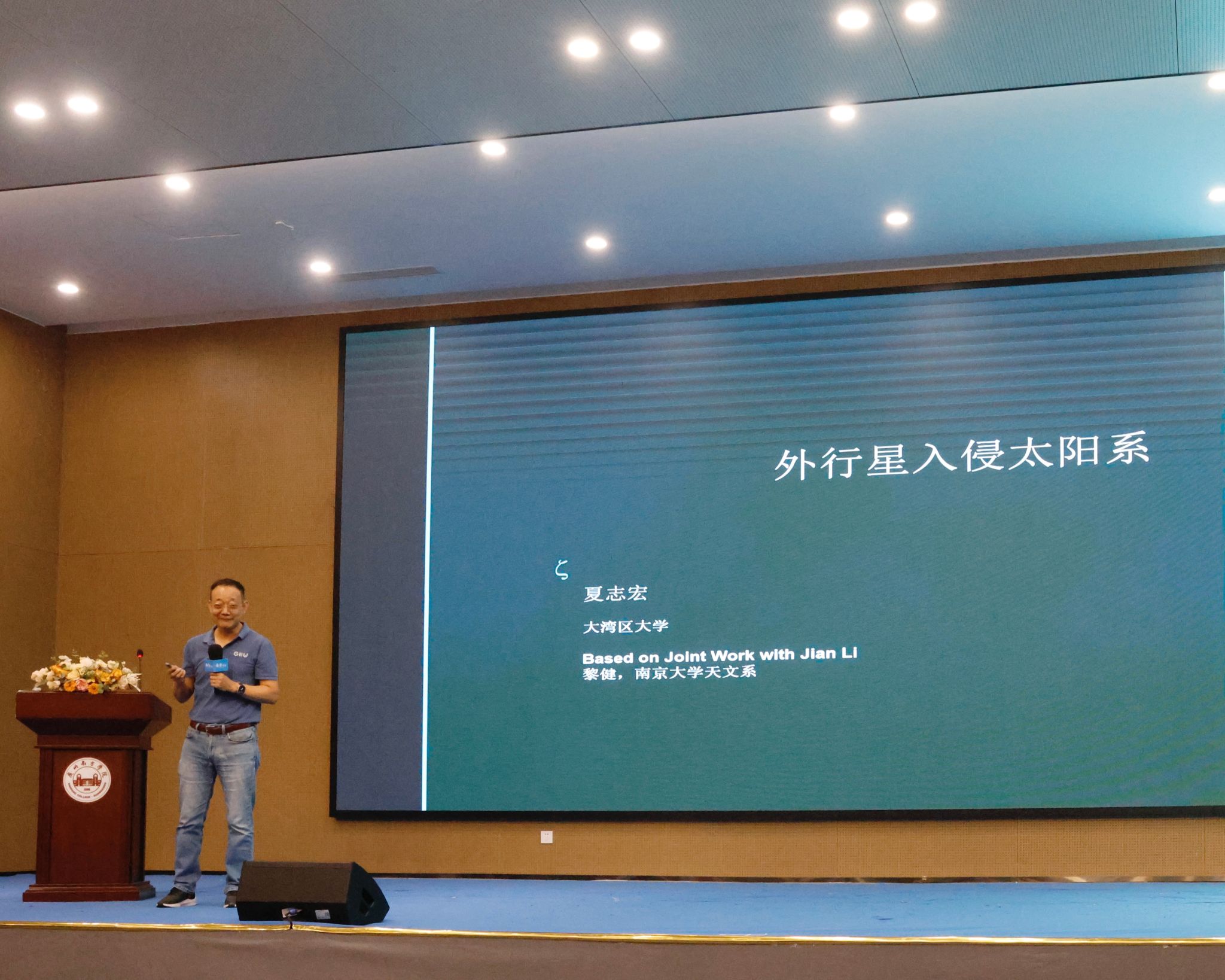 夏志宏教授首先对9428cn太阳集团古天乐的诚挚邀请表达衷心的感谢。随后,他向在场师生分享最新研究成果——其带领的研究团队通过精密数学模型与大规模计算模拟,发现了一颗闯入太阳系的外来行星。夏志宏谈到:“这颗外来行星的质量介于土星与木星之间,约为地球的95~318倍,它在大概3亿年前突然造访太阳系,短暂游荡后又离开。”