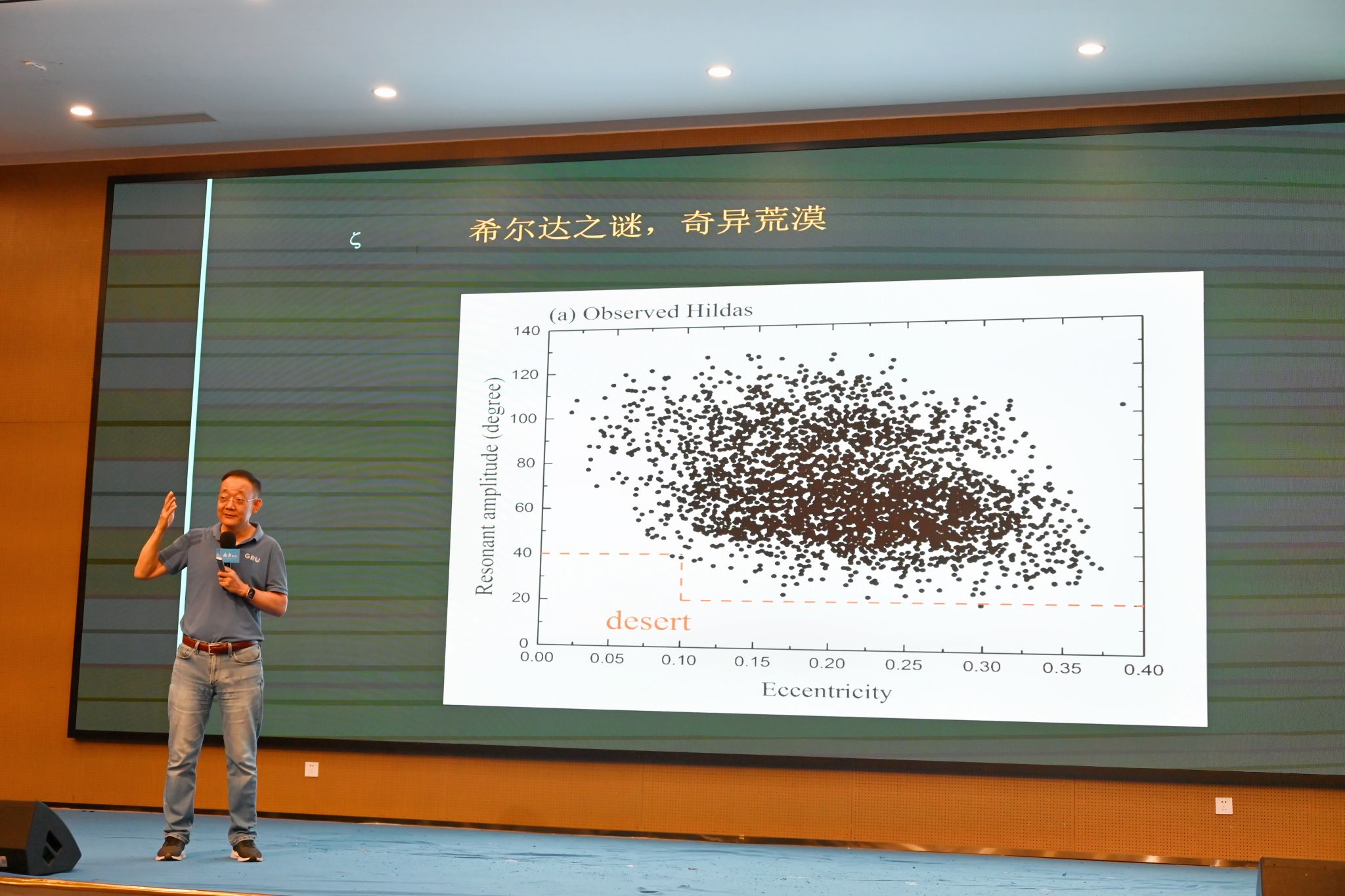据介绍,希尔达小行星群由约3700颗小行星组成,与木星呈2:3共振轨道。然而,这一行星群存在一个“荒漠区”——理论上最稳定、最易聚集小行星的区域内,却未观测到任何小行星的存在。夏志宏指出,该异常现象成为验证假说的关键。于是,研究团队运用计算机模拟推演发现,如果有一颗巨大的流浪行星穿越太阳系,其强大引力扰动恰好能造成希尔达小行星群的异常分布情况。