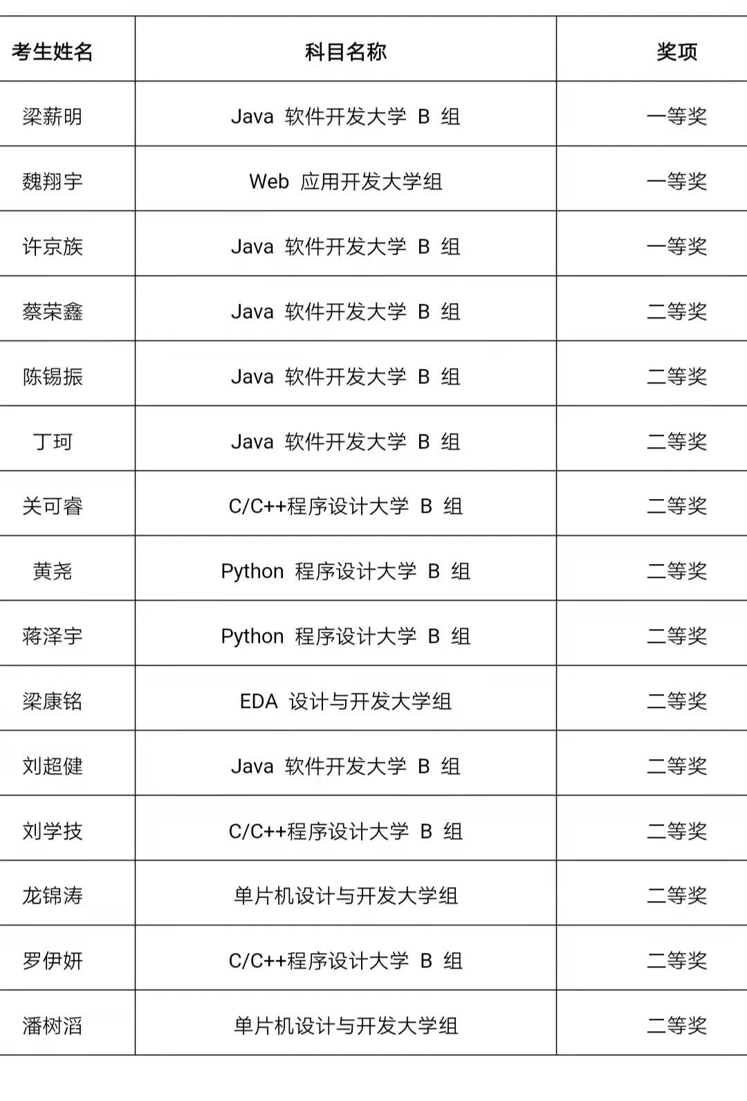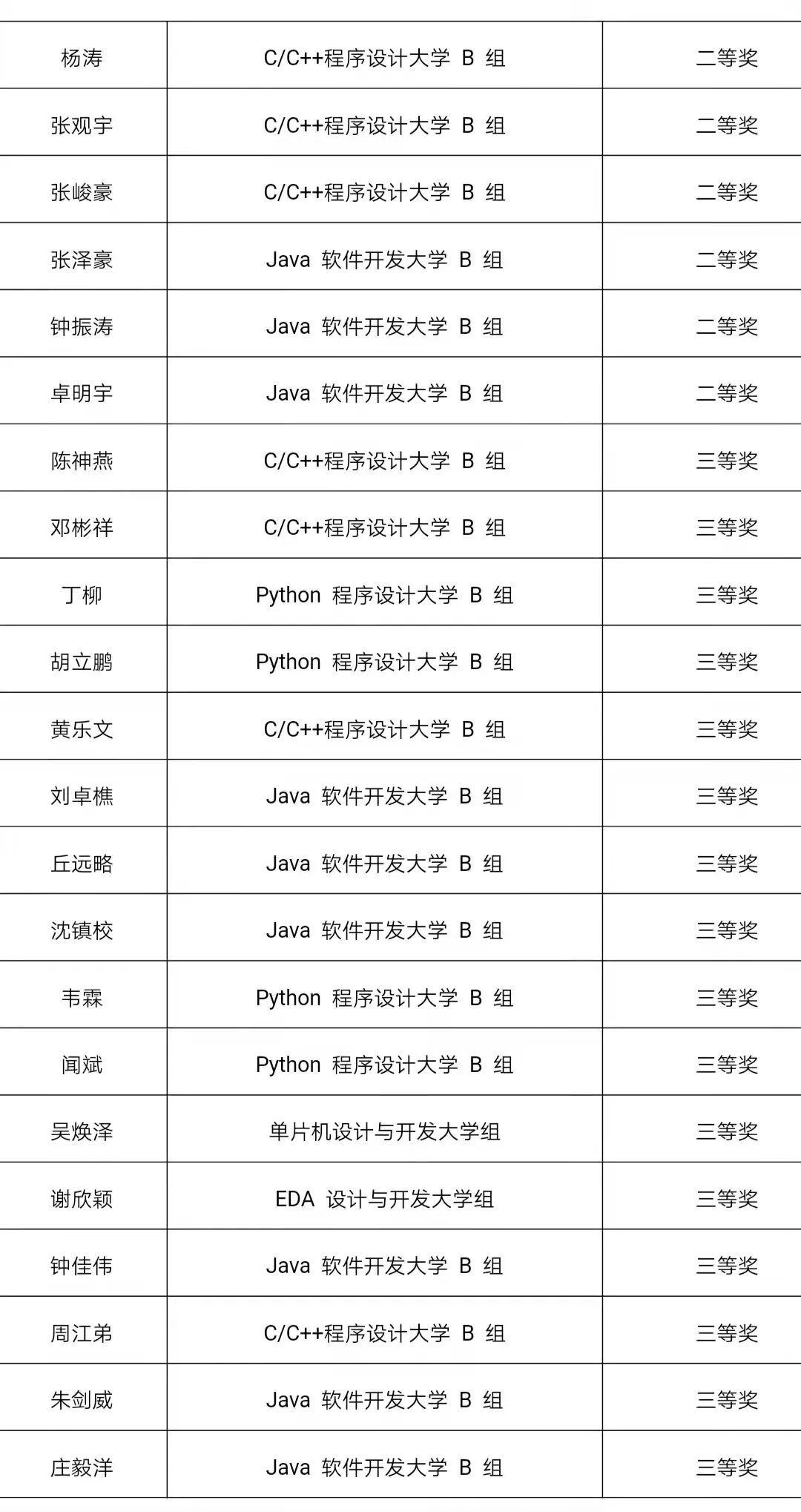 近日,在第十三届蓝桥杯全国软件和信息技术专业人才大赛个人赛省级比赛中,我校电气与计算机工程学院教师指导学生参加并斩获37个奖项,其中一等奖3名,二等奖18名,三等奖16名,具体名单如下: