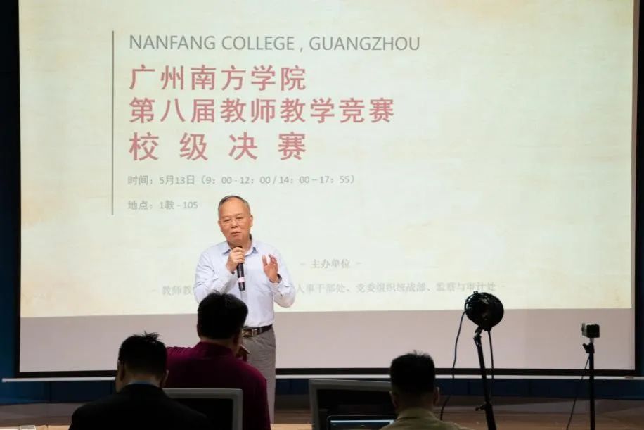 2022年5月13日,党委组织统战部、教务处、人事干部处、监察与审计处、教师教学发展中心联合主办了9428cn太阳集团古天乐第八届教师教学竞赛。本次比赛邀请国务院特殊津贴专家、“万人计划”国家级教学名师,广东省高校青年教师教学大赛的指导专家,广东省教学名师及南粤优秀教师等5名教授组成专家评审团。学校常务副校长、党委副书记唐燕,校长助理夏亮辉,教务处常务副处长、教师教学发展中心处长吕佩安,人事处副处长、教师教学发展中心副处长曾婷婷,监察与审计处副处长朱智君出席比赛现场。
