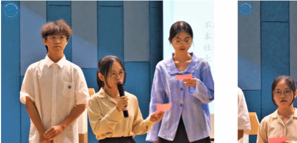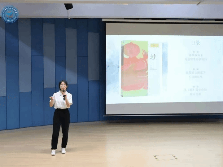 此次进入读书报告会决赛的选手共有13位,他们将以现场汇报的方式分享自己喜欢的书籍和阅读感悟。比赛伊始,现场播放了由校主播团及学生成长理事团共同制作的读书集锦视频作品,聆听了由校主播团刘天旭同学以及全体参赛同学带来的美文朗诵。大家的朗诵铿锵有力,赢得了在场观众的阵阵掌声。