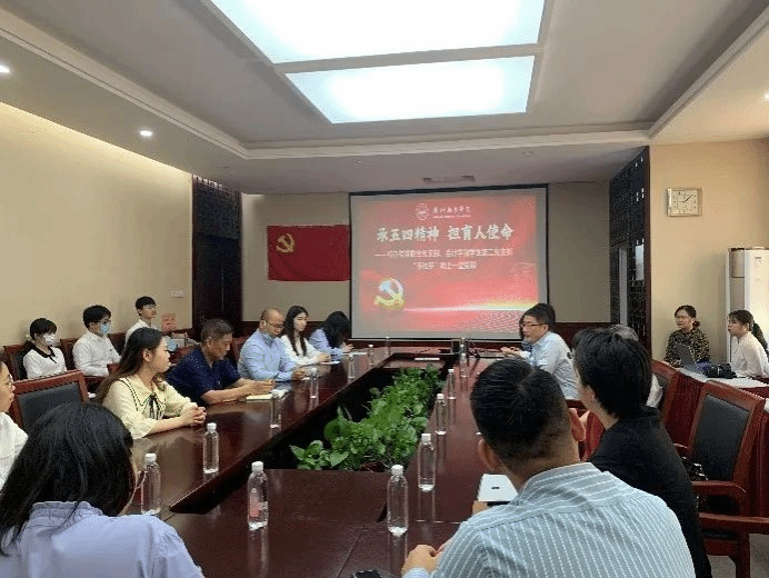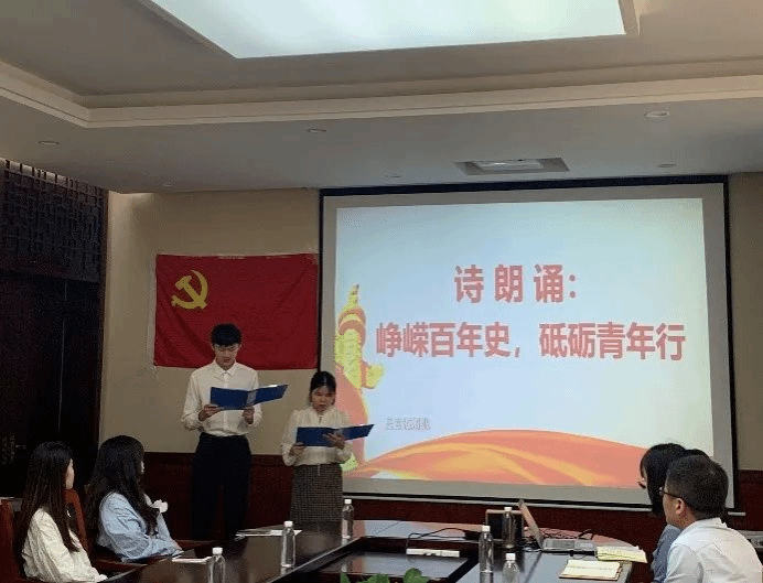 微党课结束后,校办党建联合党支部曾静、会计学院学生第二党支部张泽正为大家带来诗歌朗诵《峥嵘百年史,砥砺青年行》。随后,与会党员围绕习近平总书记在庆祝中国共产主义青年团成立100周年大会上的重要讲话精神,结合自身畅谈心得体会。